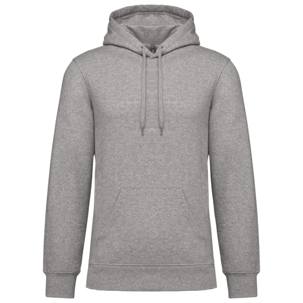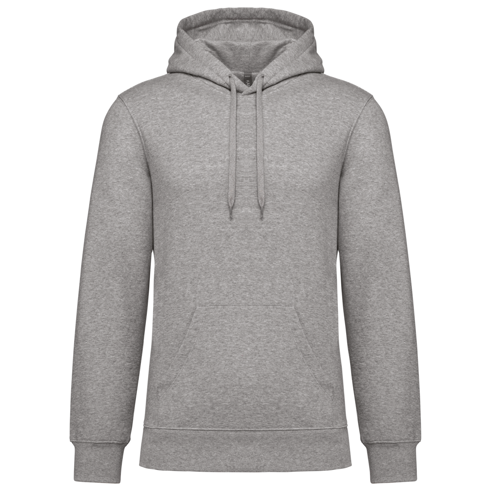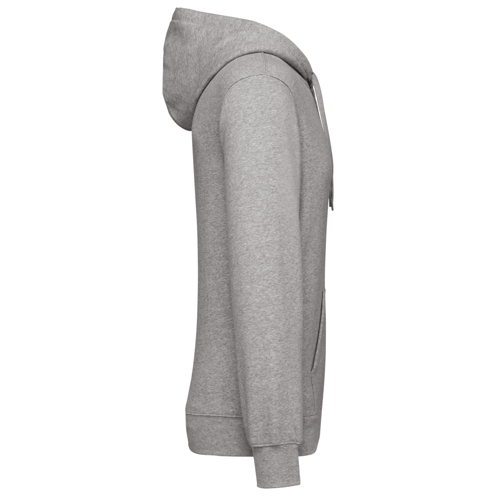 80% katoen / 20% polyester. Geborsteld LSF-fleece 3 draden (Low Shrinkage Fleece), behandeld tegen pluizen. Gemaakt in Portugal. Straight snit. Cut-and-sew-techniek. 1x1 ribboord in buisconstructie voor een betere afwerking aan de mouwuiteinden en de onderkant. Kangoeroezak. Gevoerde capuchon in 100% jerseykatoen met platte aanrijgkoordjes die door knoopsgaten lopen. Halvemaanvormige afwerking aan de binnenkant van de kraag. Dubbel stiksel aan de mouwuiteinden en de onderkant. Geen merklabel, maar een maatlabel in de kraag voor eenvoudige personalisatie.
