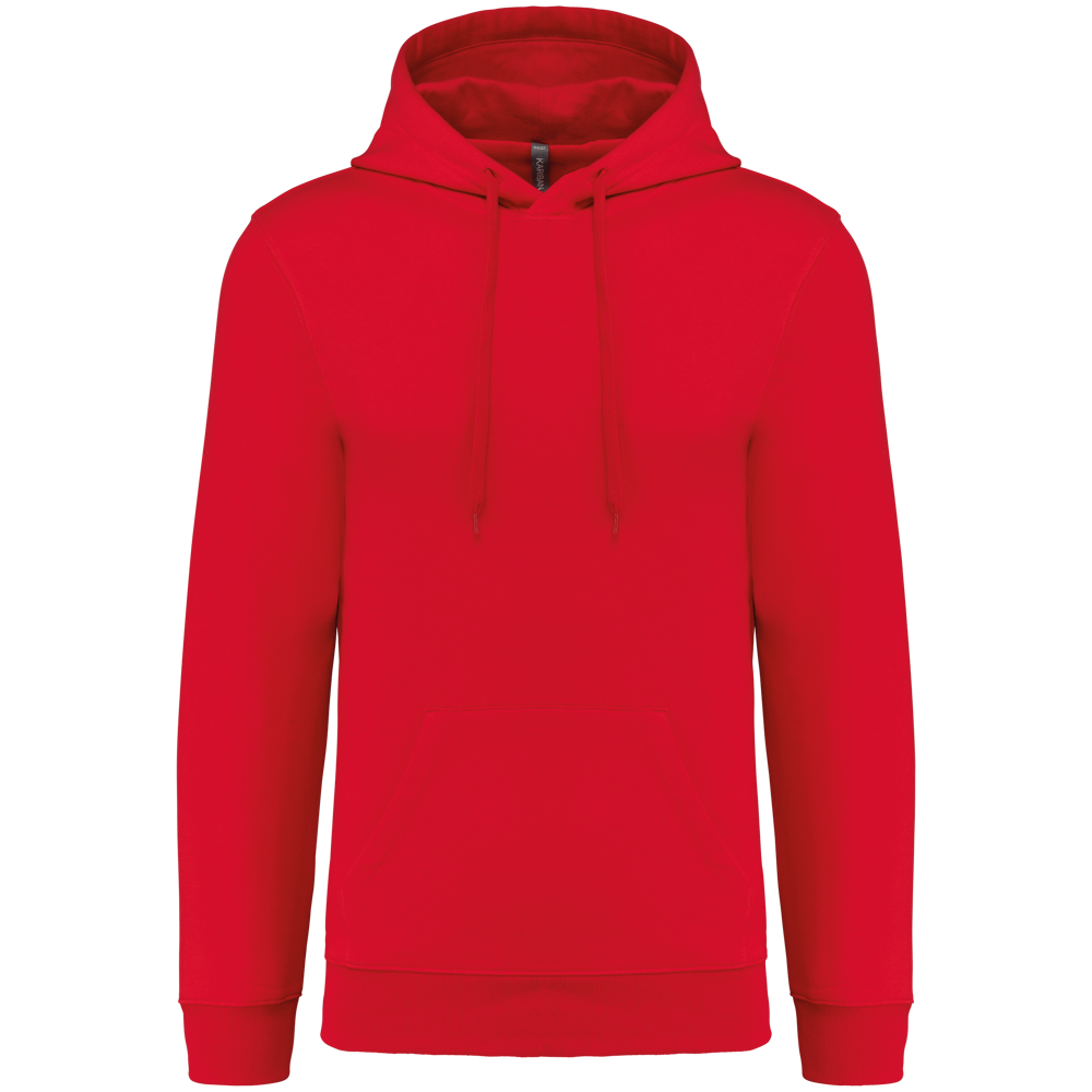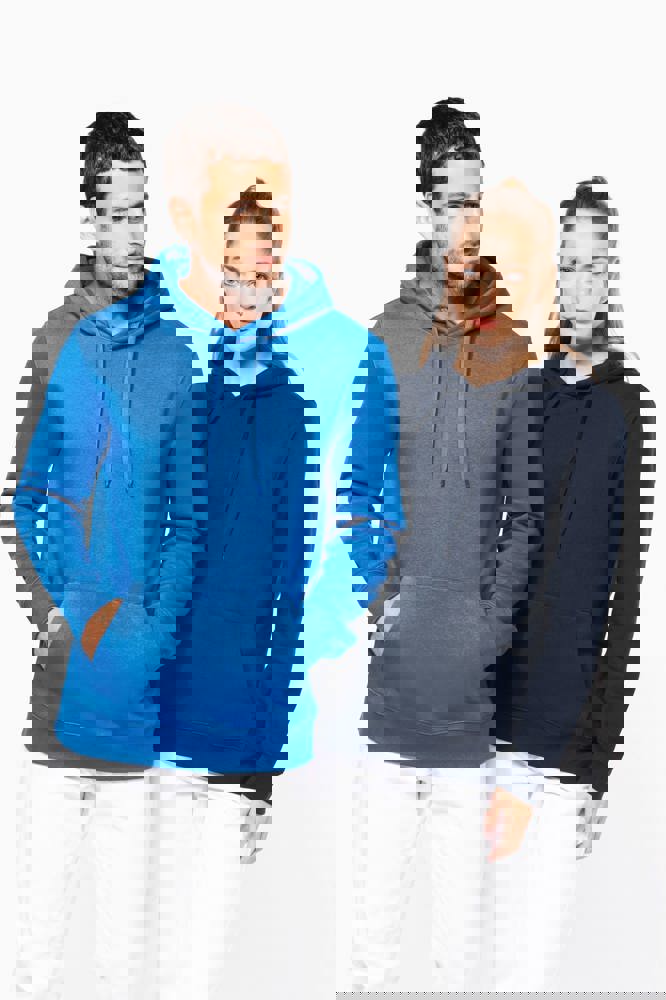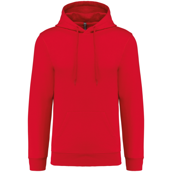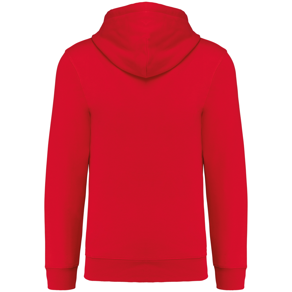 80% katoen / 20% polyester. Geborsteld LSF-fleece 3 draden (Low Shrinkage Fleece), behandeld tegen pluizen. Gemaakt in Portugal. Straight snit. Cut-and-sew-techniek. 1x1 ribboord in buisconstructie voor een betere afwerking aan de mouwuiteinden en de onderkant. Kangoeroezak. Gevoerde capuchon in 100% jerseykatoen met platte aanrijgkoordjes die door knoopsgaten lopen. Halvemaanvormige afwerking aan de binnenkant van de kraag. Dubbel stiksel aan de mouwuiteinden en de onderkant. Geen merklabel, maar een maatlabel in de kraag voor eenvoudige personalisatie.