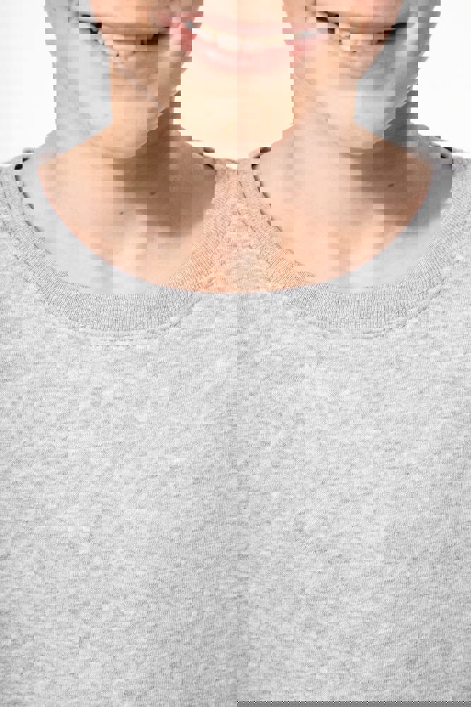 80% katoen / 20% polyester. Gekamd katoen. 3-laags LSF (Low Shrinkage Fleece) geborsteld fleece met behandeling tegen pluizen. Gemaakt in Portugal. Rechte snit. Hals, mouwuiteinden en boord in 1x1 ribstof. Afgewerkt met dubbel stiksel op schouders, armsgaten, mouwuiteinden en boord. Nektape in bijpassende jersey in de kraag. Halvemaanvormig inzetsel achteraan. Naamlabel in de kleding. Geen merklabel in de halsopening, enkel een maatlabel voor eenvoudige personalisatie.