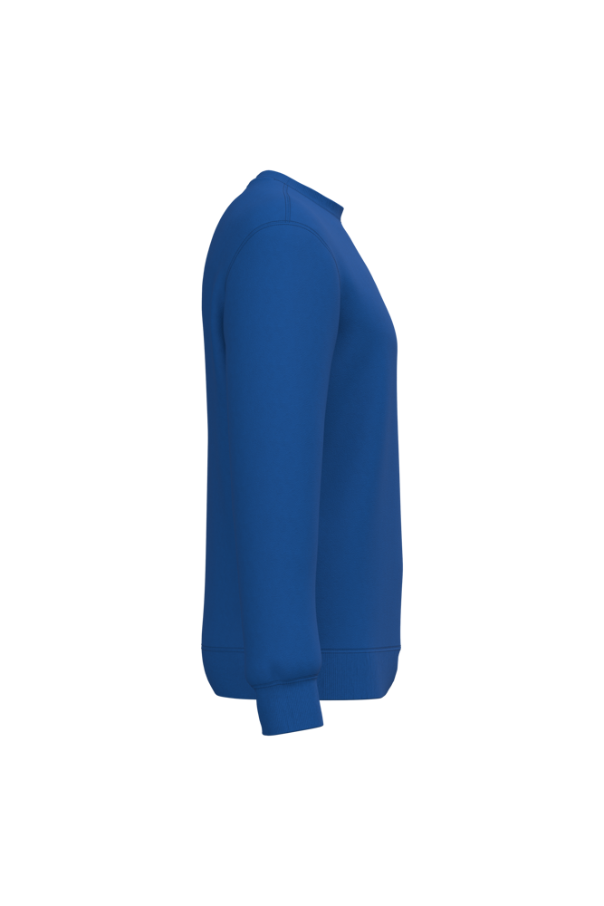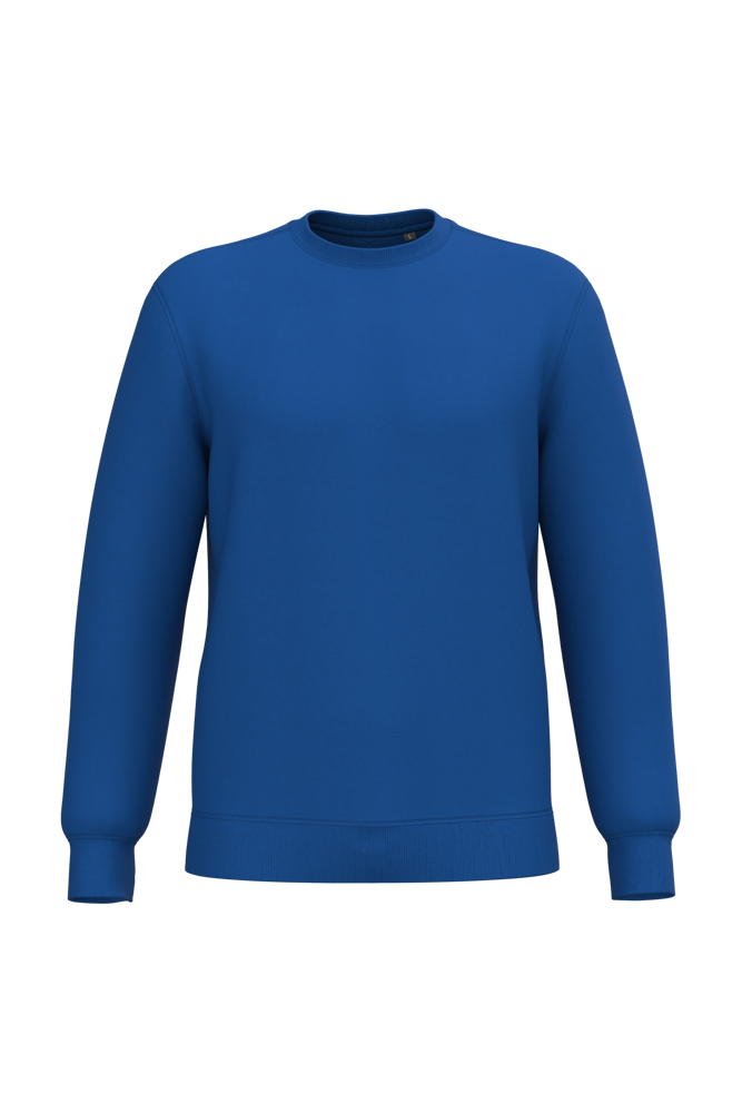 50% ringgesponnen katoen / 50% gerecycled polyester post-consumer. Geborsteld fleece aan de binnenkant. Straight snit. Cut-and-sew-techniek. 2x1 ribboord in buisconstructie voor een betere afwerking aan de hals, de mouwuiteinden en de onderkant. Toon-op-toon nektape in jersey in de kraag. Geen merklabel in de kraag, maar enkel een maatlabel voor eenvoudige personalisatie.