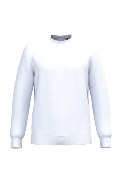 50% ringgesponnen katoen / 50% gerecycled polyester post-consumer. Geborsteld fleece aan de binnenkant. Straight snit. Cut-and-sew-techniek. 2x1 ribboord in buisconstructie voor een betere afwerking aan de hals, de mouwuiteinden en de onderkant. Toon-op-toon nektape in jersey in de kraag. Geen merklabel in de kraag, maar enkel een maatlabel voor eenvoudige personalisatie.