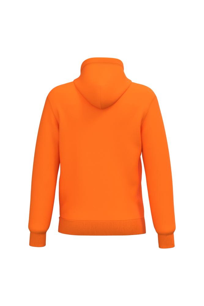 50% ringgesponnen katoen / 50% gerecycled polyester post-consumer. Geborsteld fleece aan de binnenkant. Straight snit. Cut-and-sew-techniek. 2x1 ribboord in buisconstructie voor een betere afwerking aan de hals, de mouwuiteinden en de onderkant. Kangoeroezak. Gevoerde capuchon in jersey-polykatoen met platte aanrijgkoordjes. Ton-sur-ton nektape in jersey in de kraag. Geen merklabel in de kraag, maar enkel een maatlabel voor eenvoudige personalisatie.
