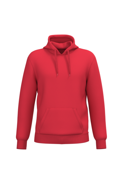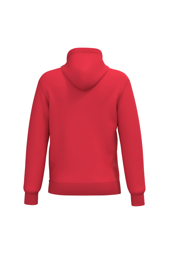 50% ringgesponnen katoen / 50% gerecycled polyester post-consumer. Geborsteld fleece aan de binnenkant. Straight snit. Cut-and-sew-techniek. 2x1 ribboord in buisconstructie voor een betere afwerking aan de hals, de mouwuiteinden en de onderkant. Kangoeroezak. Gevoerde capuchon in jersey-polykatoen met platte aanrijgkoordjes. Ton-sur-ton nektape in jersey in de kraag. Geen merklabel in de kraag, maar enkel een maatlabel voor eenvoudige personalisatie.