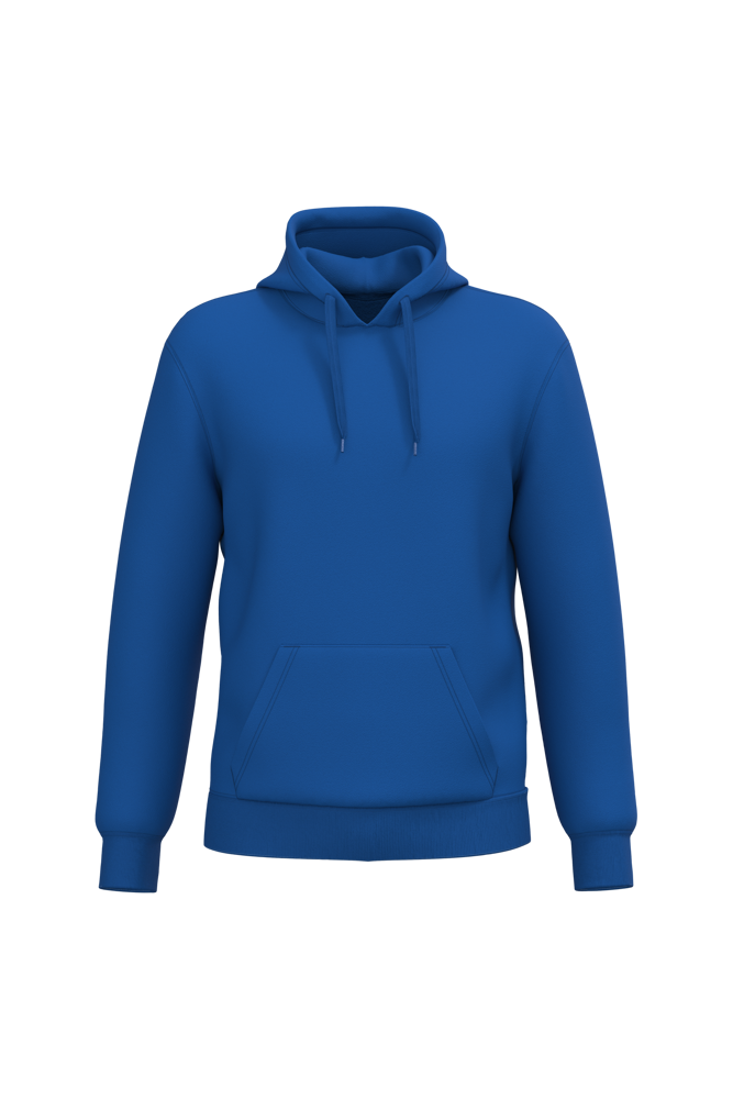 50% ringgesponnen katoen / 50% gerecycled polyester post-consumer. Geborsteld fleece aan de binnenkant. Straight snit. Cut-and-sew-techniek. 2x1 ribboord in buisconstructie voor een betere afwerking aan de hals, de mouwuiteinden en de onderkant. Kangoeroezak. Gevoerde capuchon in jersey-polykatoen met platte aanrijgkoordjes. Ton-sur-ton nektape in jersey in de kraag. Geen merklabel in de kraag, maar enkel een maatlabel voor eenvoudige personalisatie.