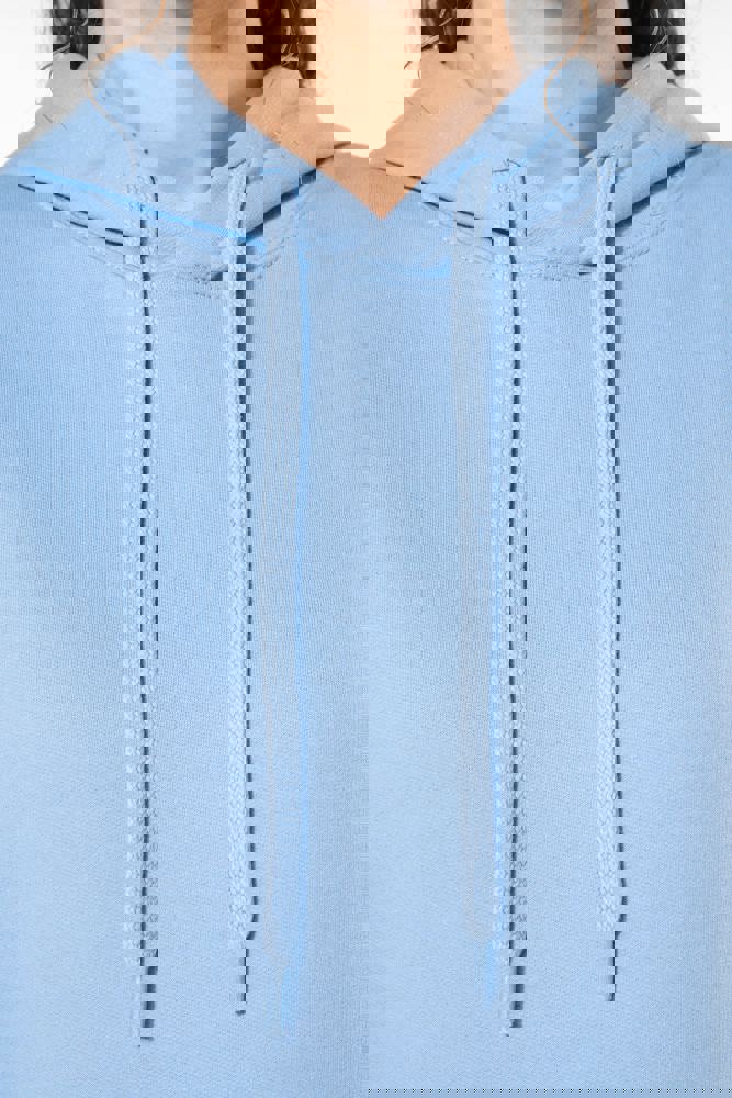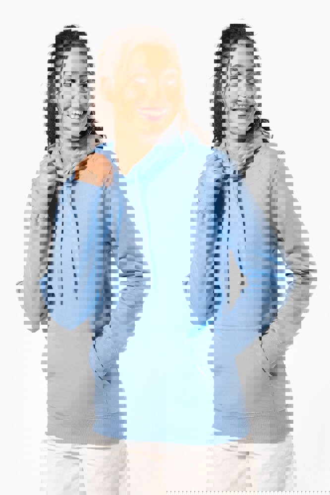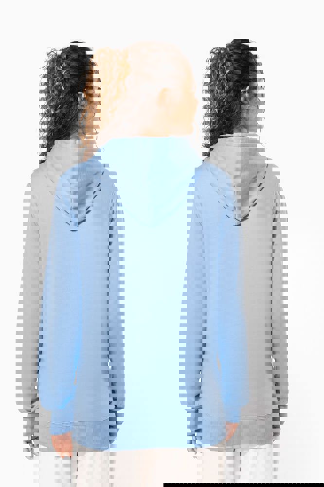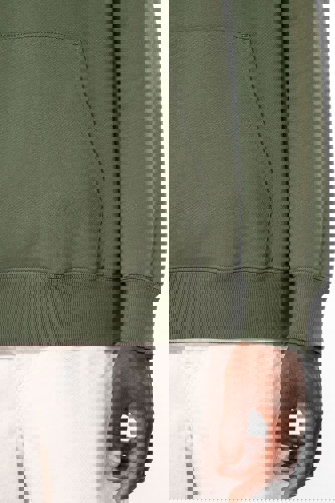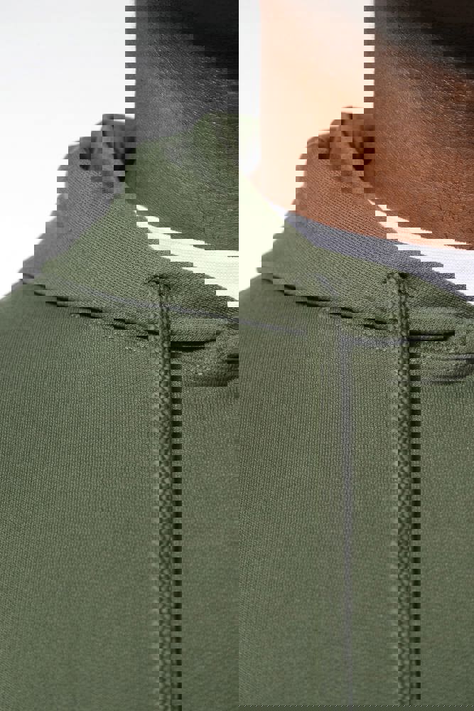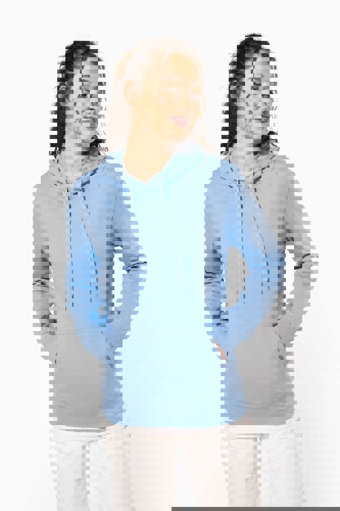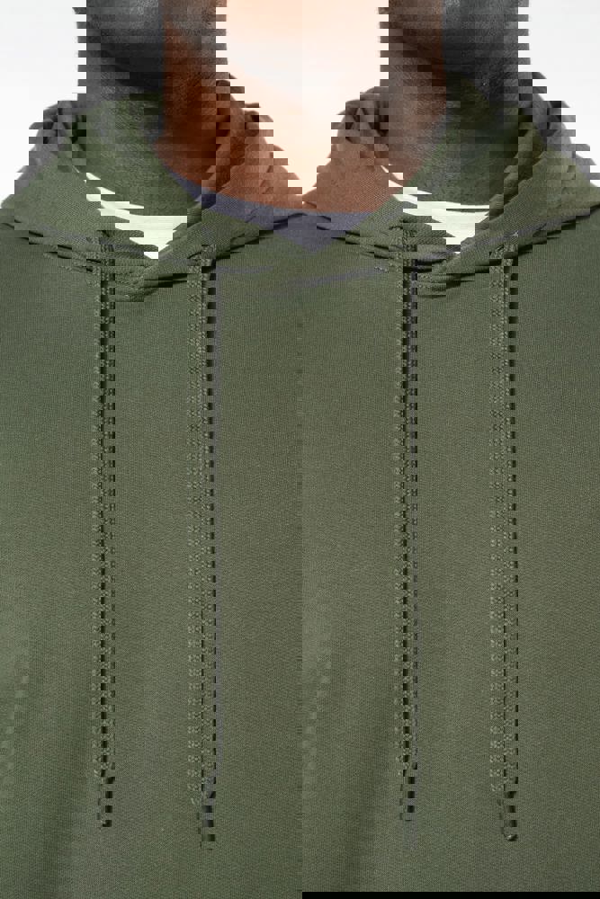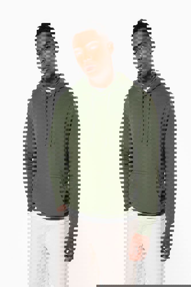 50% ringgesponnen katoen / 50% gerecycled polyester post-consumer. Geborsteld fleece aan de binnenkant. Straight snit. Cut-and-sew-techniek. 2x1 ribboord in buisconstructie voor een betere afwerking aan de hals, de mouwuiteinden en de onderkant. Kangoeroezak. Gevoerde capuchon in jersey-polykatoen met platte aanrijgkoordjes. Ton-sur-ton nektape in jersey in de kraag. Geen merklabel in de kraag, maar enkel een maatlabel voor eenvoudige personalisatie.
