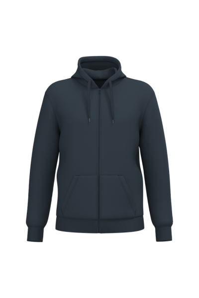 50% ringgesponnen katoen / 50% gerecycled polyester post-consumer. Geborsteld fleece aan de binnenkant. Straight snit. Cut-and-sew-techniek. 2x1 ribboord in buisconstructie voor een betere afwerking aan de hals, de mouwuiteinden en de onderkant. Kangoeroezak. Ritssluiting in nylon. Gevoerde capuchon in jersey-polykatoen met platte aanrijgkoordjes. Toon-op-toon nektape in jersey in de kraag. Geen merklabel in de kraag, maar enkel een maatlabel voor eenvoudige personalisatie.