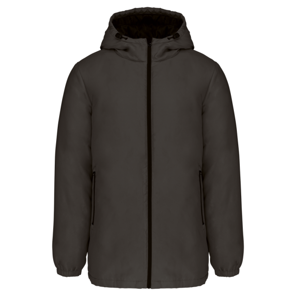 100% polyester. Deze parka is gemaakt van 100% gerecycled polyester post-consumer. Waterafstotende stof. Fluweelachtige afwerking voor een zachter gevoel. Voering van zwart tafpolyester 210T. Gewatteerde binnenkant in 100% polyester. Comfortabele snit. Nylon ritssluiting en metalen ritstrekker. Capuchon met 3 panelen en voering in polyester, met aanrijgkoordjes en stopper. 2 ritszakken aan de voorkant. 1 binnenzak met klittenbandsluiting. Elastische mouwuiteinden. Verlengd achterpand voor meer comfort. Stoffen patch aan de binnenkant van de kraag voor de personalisatie. Blinde drukkersrits onderaan en aan de linkerkant vooraan. Geen merklabel, voor eenvoudige personalisatie.