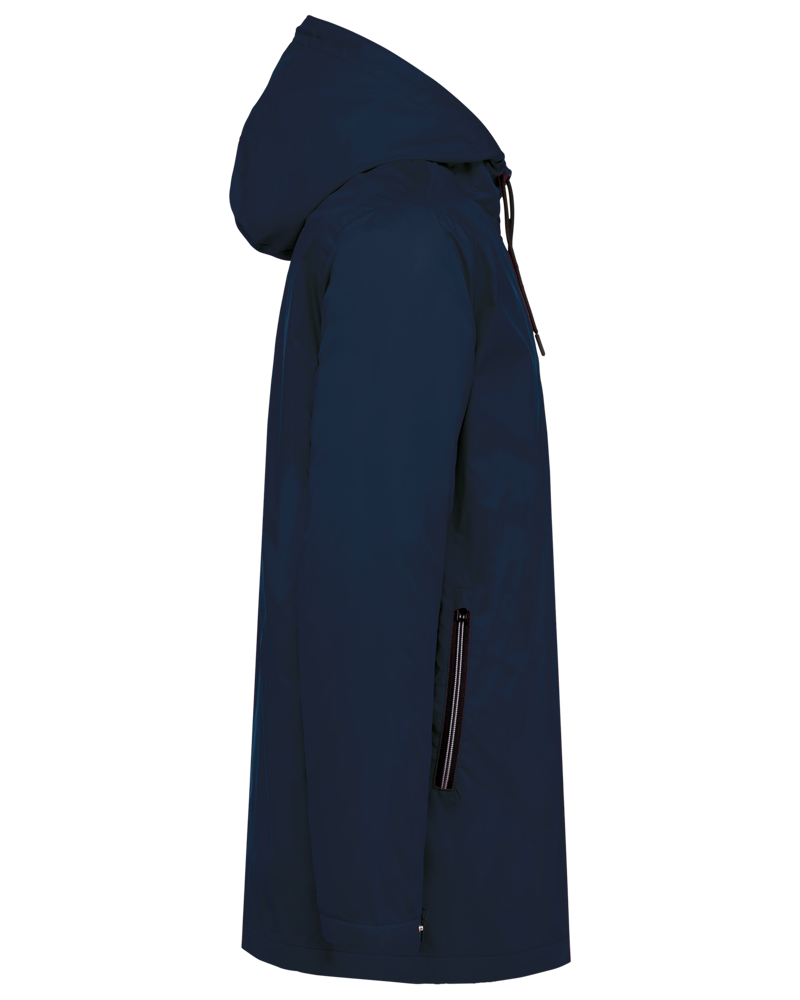 100% polyamide 210T met acrylcoating. Voering van 100% microfleece polyester. Rechte snit. Het lichaam, de kraag en de capuchon zijn gevoerd met toon op toon microfleece. Gewatteerde mouwen met polyester voering. Zwarte ritssluitingen met kettinkje van zilverkleurig nylon. 2 ritszakken aan de voorkant. 1 binnenzak met klittenbandsluiting. Gevoerde, driedelige capuchon met zwarte aanrijgkoordjes. Aan de mouwuiteinden zitten 2 drukknopen. Halvemaanvormige halsopening op de achterkant, voor eenvoudige personalisatie van het merk aan de binnenkant. Ophanglint in de kraag. Blinde drukkersrits op de borst links en onderaan het kledingstuk. Tear-away merklabel.