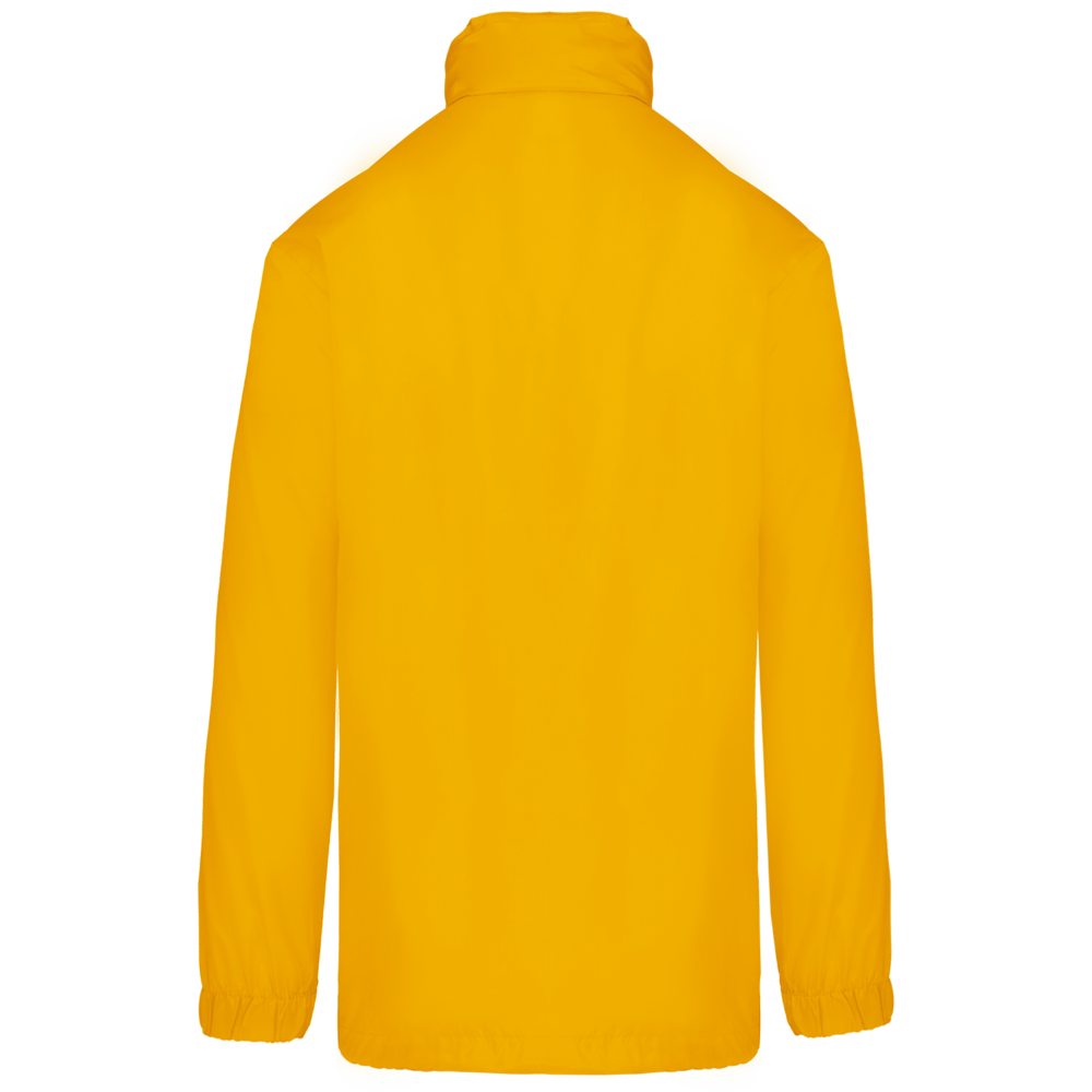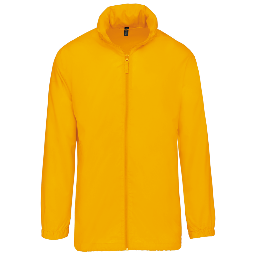 100% polyester. Capuchon in de kraag met klittenbands. 2 voorzakken met rits. Aanrijgkoord aan de onderkant. Elastische mouwuiteinden. Opvouwbaar in eigen binnenzak door middel van K-WAY® systeem. Toon op toon ritssluiting.