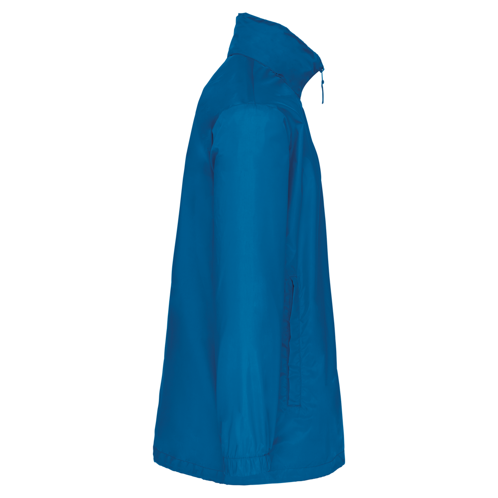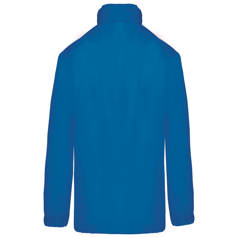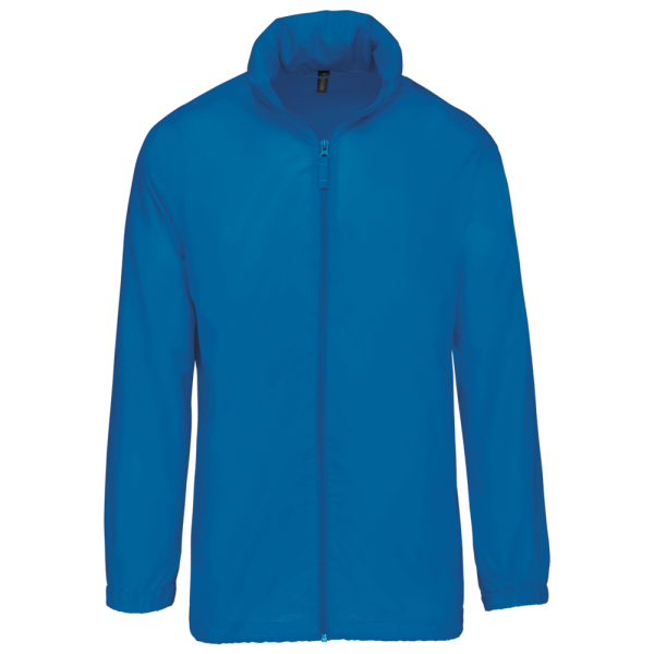 100% polyester. Capuchon in de kraag met klittenbands. 2 voorzakken met rits. Aanrijgkoord aan de onderkant. Elastische mouwuiteinden. Opvouwbaar in eigen binnenzak door middel van K-WAY® systeem. Toon op toon ritssluiting.
