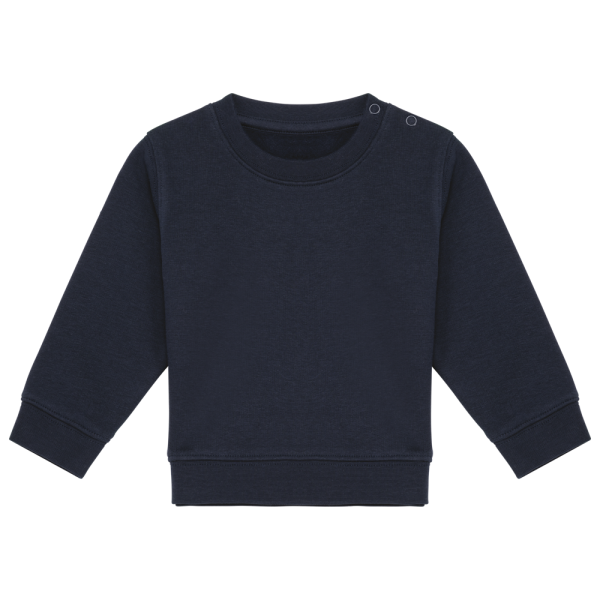 85% biologisch katoen / 15% post-consumer gerecycleerd polyester. Aan de binnenkant geborsteld fleece 3 draden. Enzymgewassen. Fitted pasvorm. 1x1 ribboord in buisconstructie voor een betere afwerking aan de hals, de mouwuiteinden en de onderkant. Kraag met 2 drukknopen (1 op de kraag en 1 op de schouder) voor gemakkelijk aantrekken. Ton-sur-ton nektape in jersey. Dubbel stiksel aan de mouwuiteinden, de onderkant en de hals. Geen merklabel in de kraag, maar enkel een maatlabel voor eenvoudige personalisatie.
