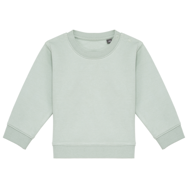 85% biologisch katoen / 15% post-consumer gerecycleerd polyester. Aan de binnenkant geborsteld fleece 3 draden. Enzymgewassen. Fitted pasvorm. 1x1 ribboord in buisconstructie voor een betere afwerking aan de hals, de mouwuiteinden en de onderkant. Kraag met 2 drukknopen (1 op de kraag en 1 op de schouder) voor gemakkelijk aantrekken. Ton-sur-ton nektape in jersey. Dubbel stiksel aan de mouwuiteinden, de onderkant en de hals. Geen merklabel in de kraag, maar enkel een maatlabel voor eenvoudige personalisatie.