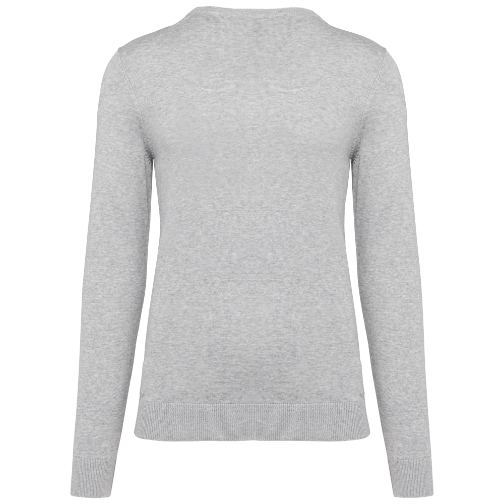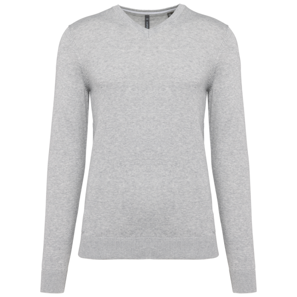 50% katoen / 50% polyester. Gemaakt van 50% biologisch katoen en 50% gerecycleerd polyester post-consumer. Gauge 12. Fully Fashion breiwerk. Rechte snit. Ingezette mouwen. V-hals met 1x1 ribboord met een dun, contrasterend streepje van 3 mm aan de binnenkant van de kraag. 1x1 ribboord aan de mouwuiteinden en onderaan. Tear-away merklabel.