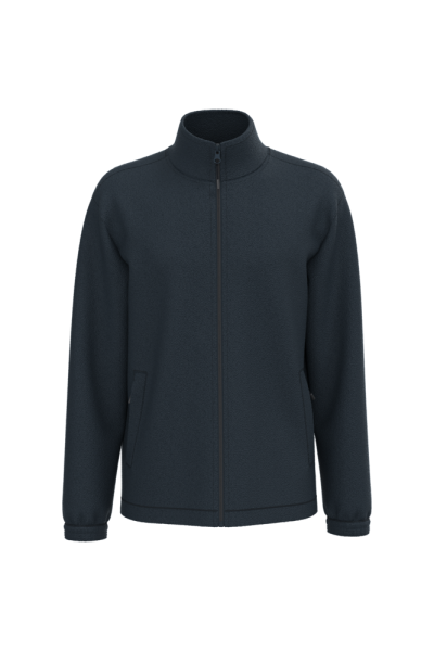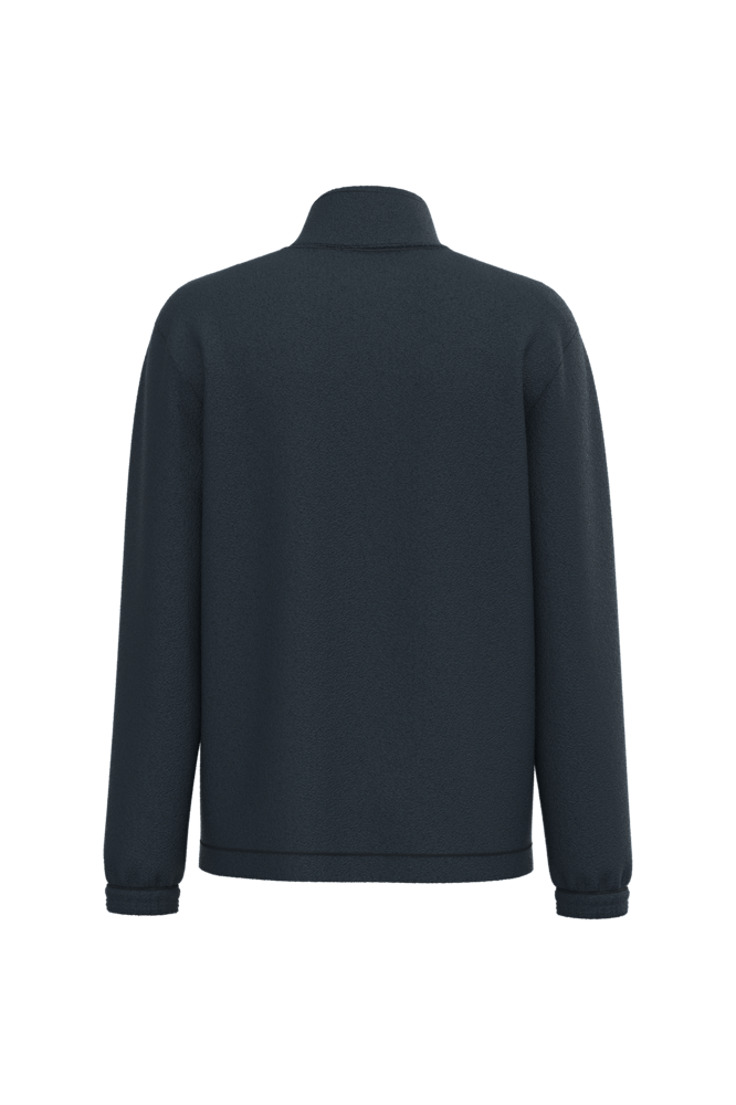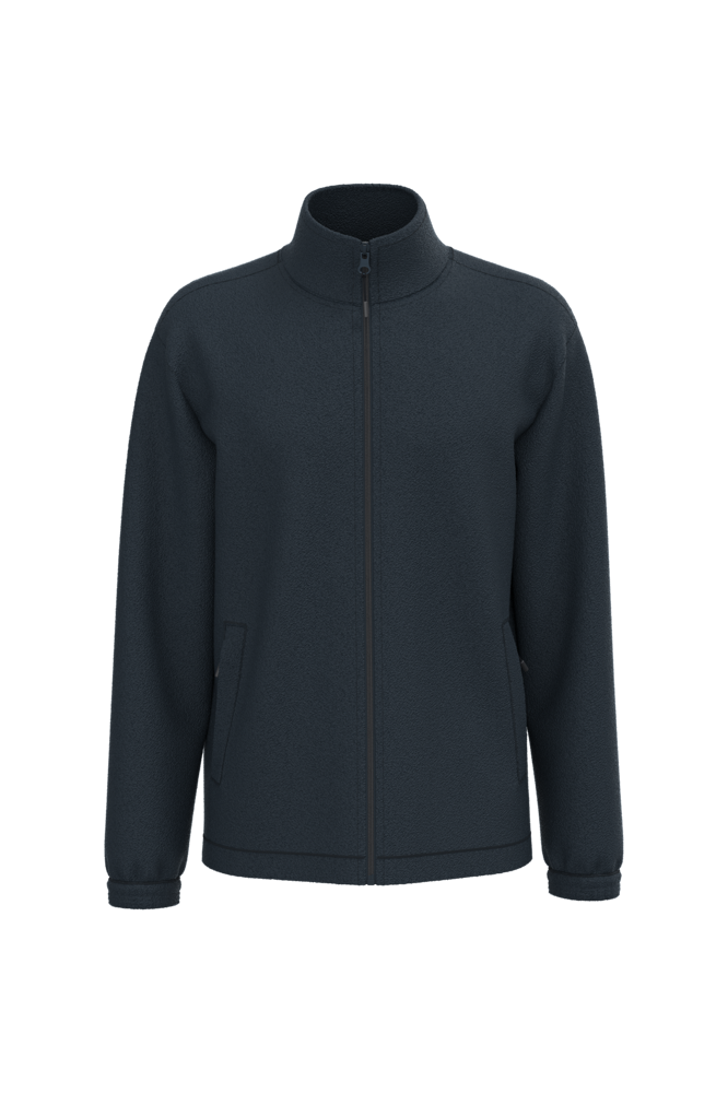 100% microfleece polyester met antipluisbehandeling. 2 omzoomde ritszakken opzij. Ritssluiting. Elastische mouwuiteinden. Boord verstelbaar met elastische aanrijgkoordjes (de elastiek zit aan de binnenkant vast om hem te verbergen).