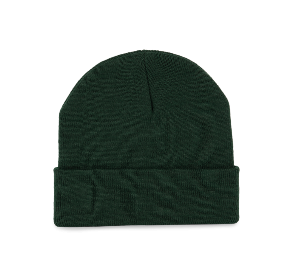 50% polyester, 50% acryl. Muts met gebreide omslag, gemaakt van gerecycleerd polyester en acryl. Tear-away merklabel.