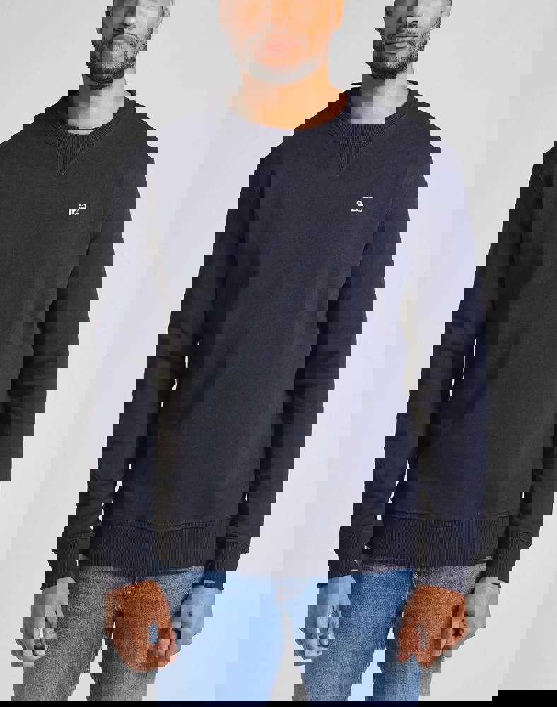 100% jerseykatoen. Regular snit. Ribkraag met een vintage V-inzetsel. Geborduurd retro Lee® logo.