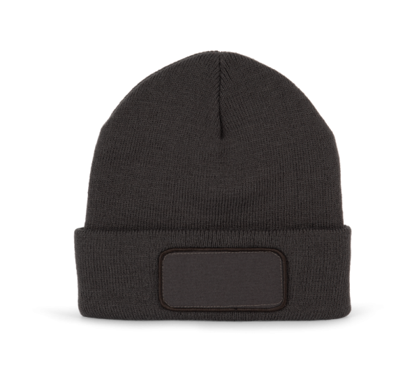100% acryl. Gebreide muts met omslag in zacht acryl. Katoenen patch aan de voorkant, voor eenvoudige personalisatie. Heel comfortabele Thinsulate-fleecevoering. Tear-away merklabel.