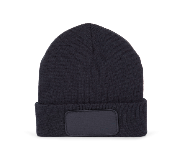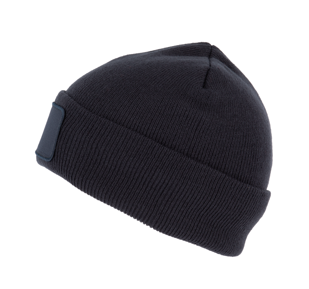 100% acryl. Gebreide muts met omslag in zacht acryl. Katoenen patch aan de voorkant, voor eenvoudige personalisatie. Heel comfortabele Thinsulate-fleecevoering. Tear-away merklabel.