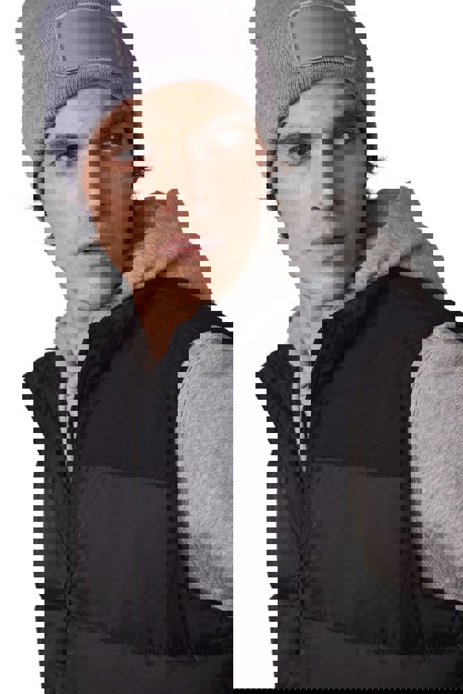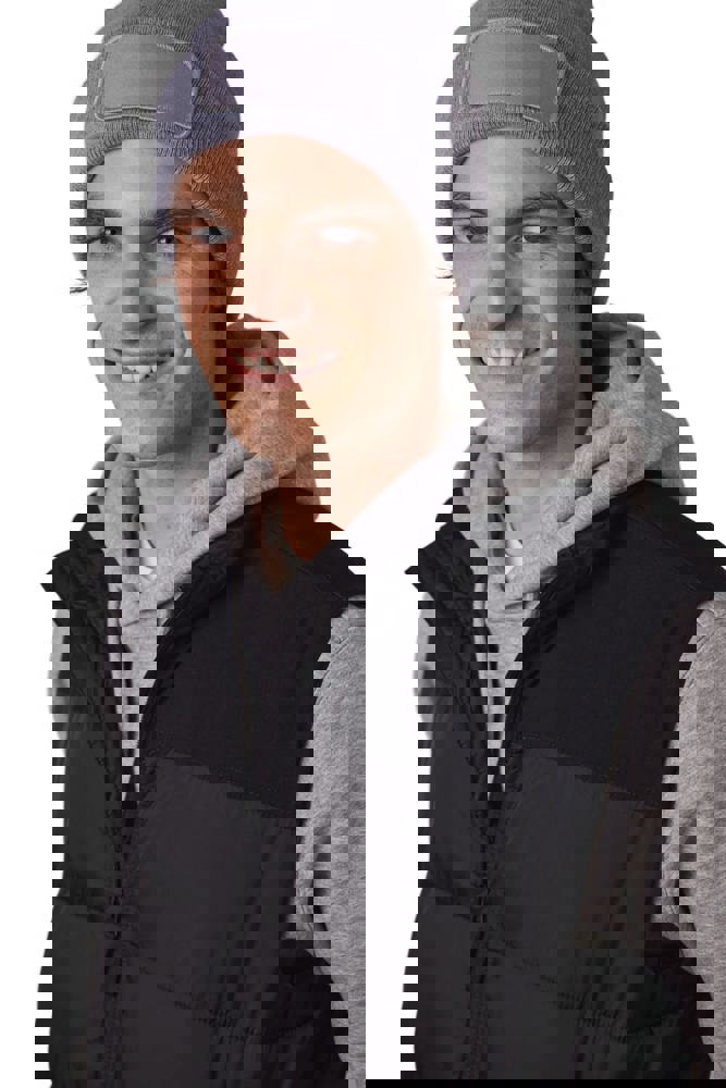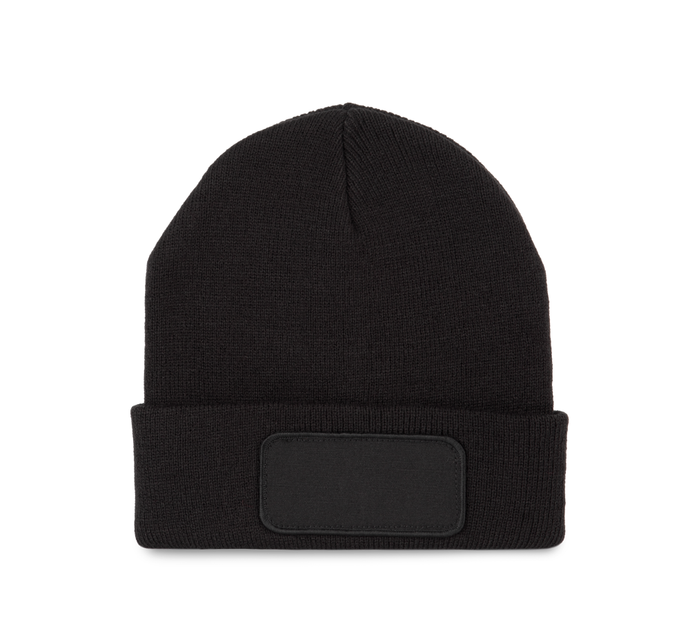 100% acryl. Gebreide muts met omslag in zacht acryl. Katoenen patch aan de voorkant, voor eenvoudige personalisatie. Tear-away merklabel.