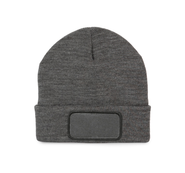 100% acryl. Gebreide muts met omslag in zacht acryl. Katoenen patch aan de voorkant, voor eenvoudige personalisatie. Tear-away merklabel.