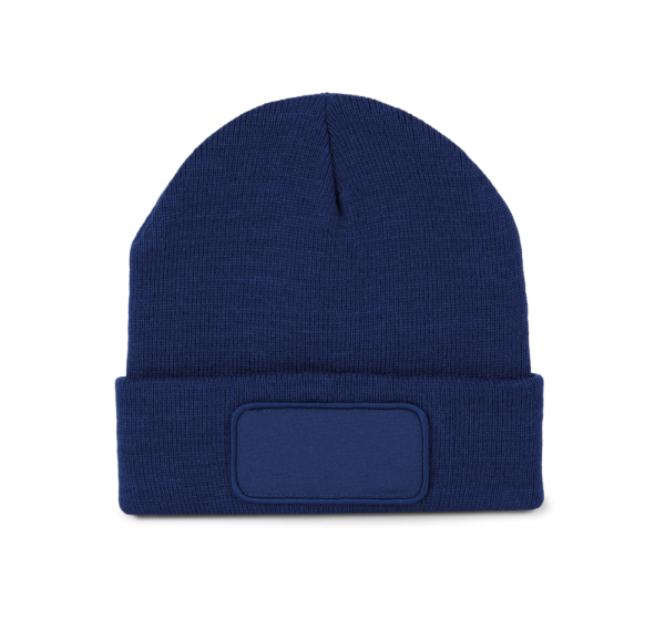 100% acryl. Gebreide muts met omslag in zacht acryl. Katoenen patch aan de voorkant, voor eenvoudige personalisatie. Tear-away merklabel.