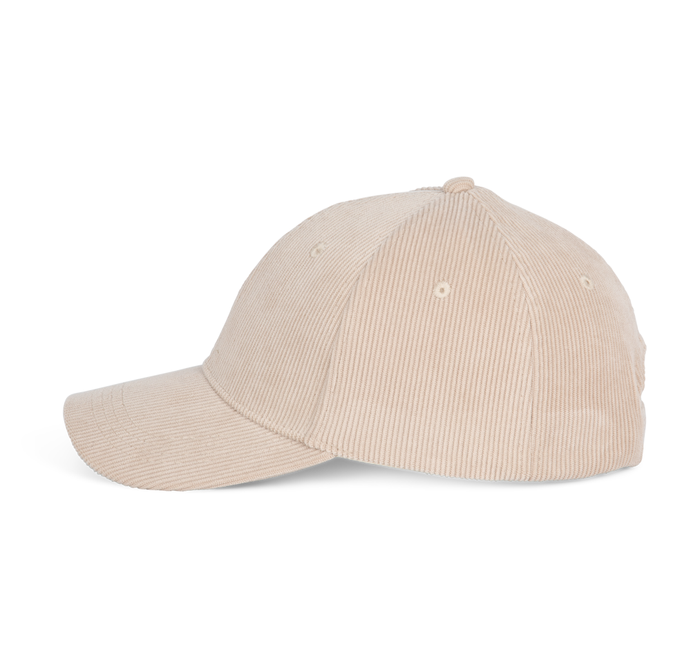 100% polyester. Polyester Corduroy. Gewelfde klep. Verstelbare klittenbandsluiting.