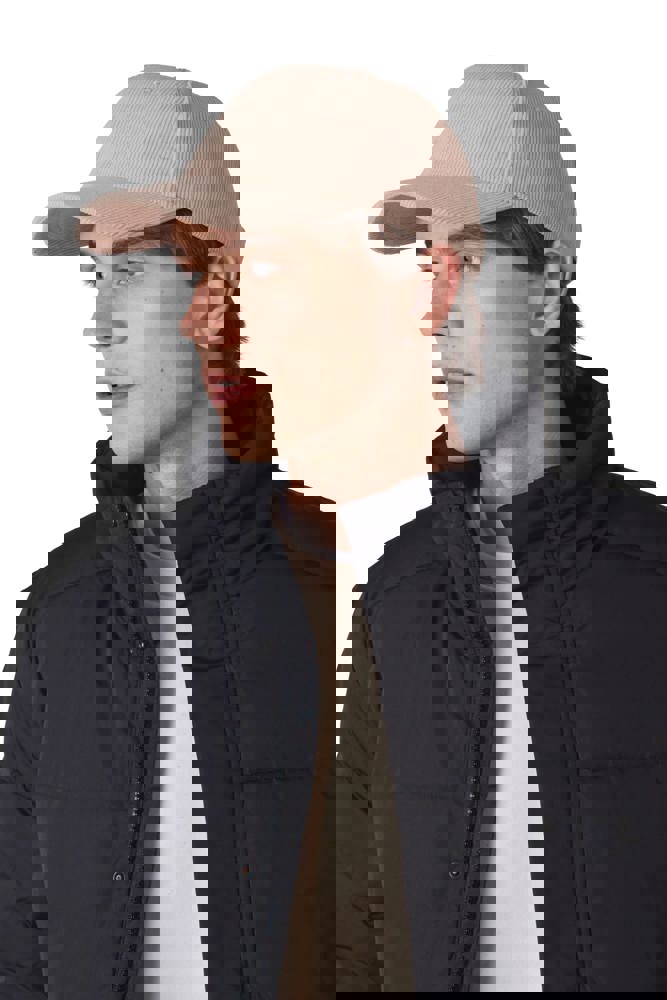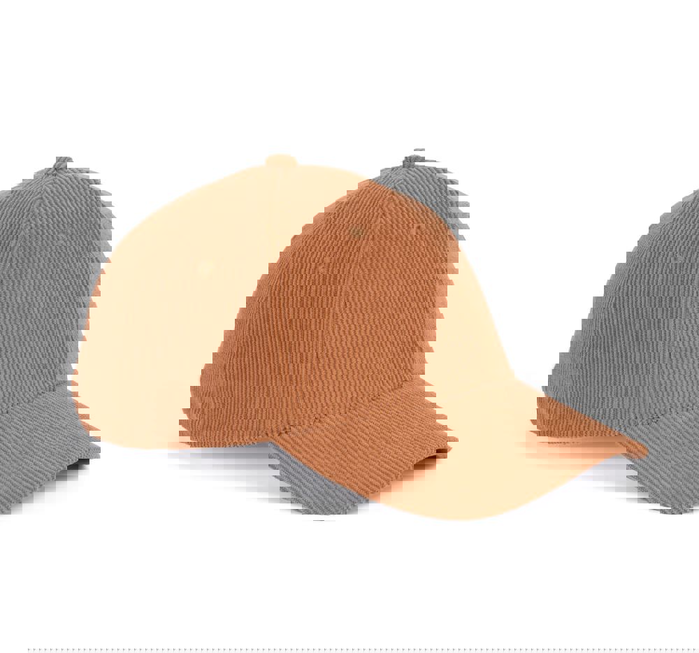 100% polyester. Polyester Corduroy. Gewelfde klep. Verstelbare klittenbandsluiting.