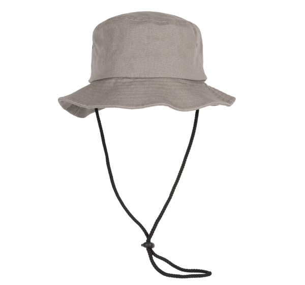 100% katoen. Katoenen bob in de stijl van een bucket hat. Veter met stopper. Tear-away merklabel.