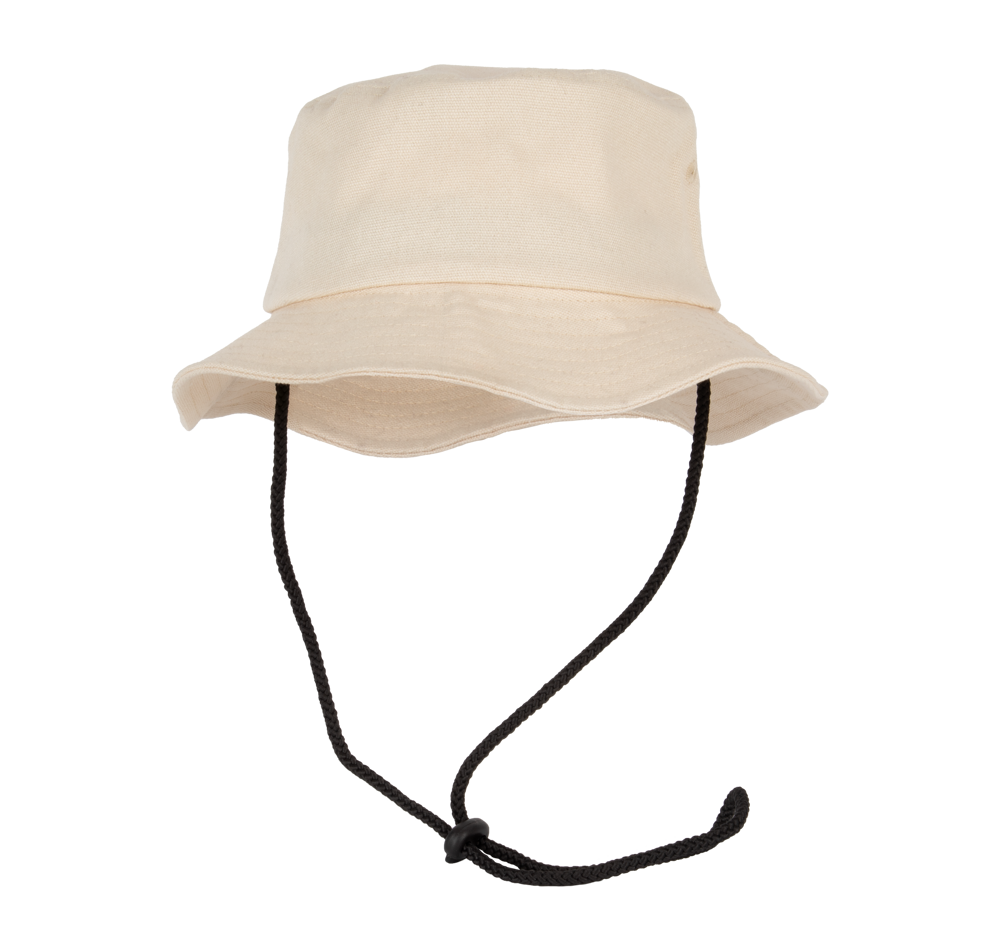 100% katoen. Katoenen bob in de stijl van een bucket hat. Veter met stopper. Tear-away merklabel.