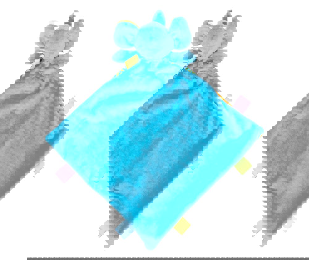 100% polyester. Knuffeldoekje olifant met rammelaar binnenin. Dekentje met felle kleuren in patchworkstijl. Toegang via een ritssluiting voor personalisatie. Voldoet aan de Europese norm voor speelgoed EN71. Geschikt voor alle leeftijden.