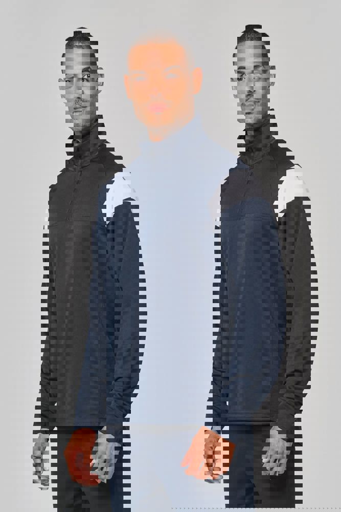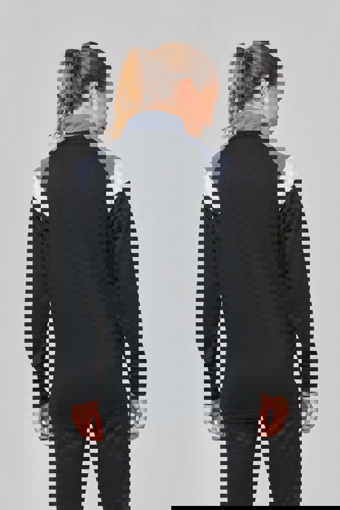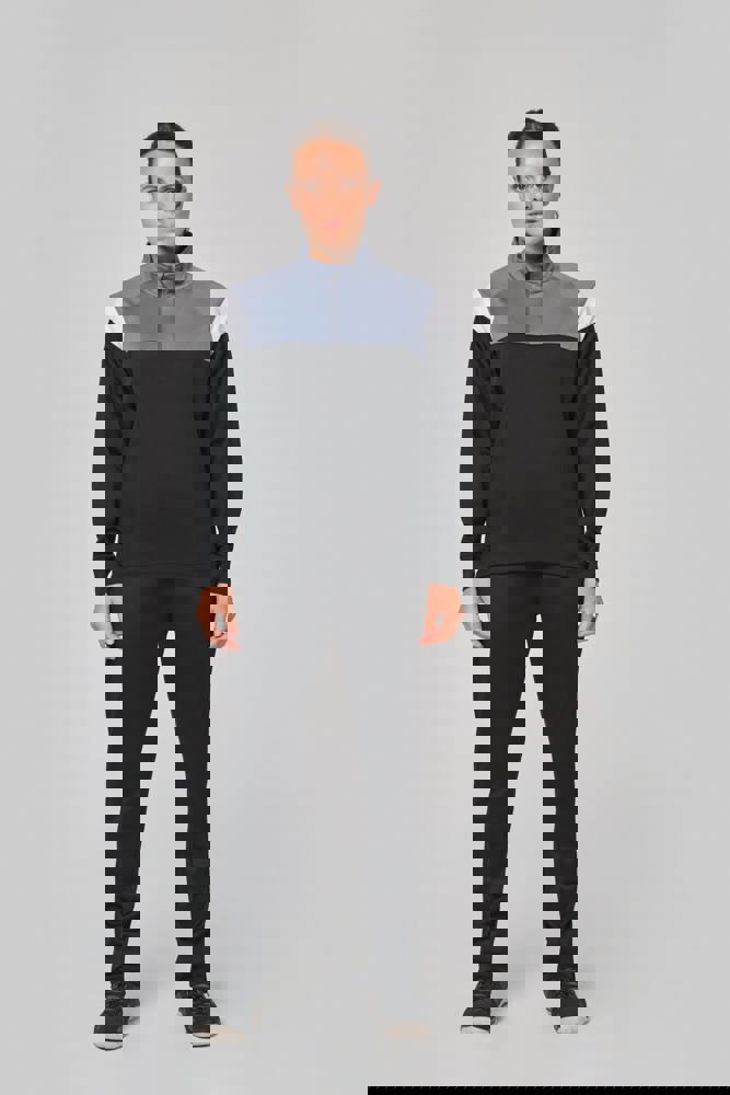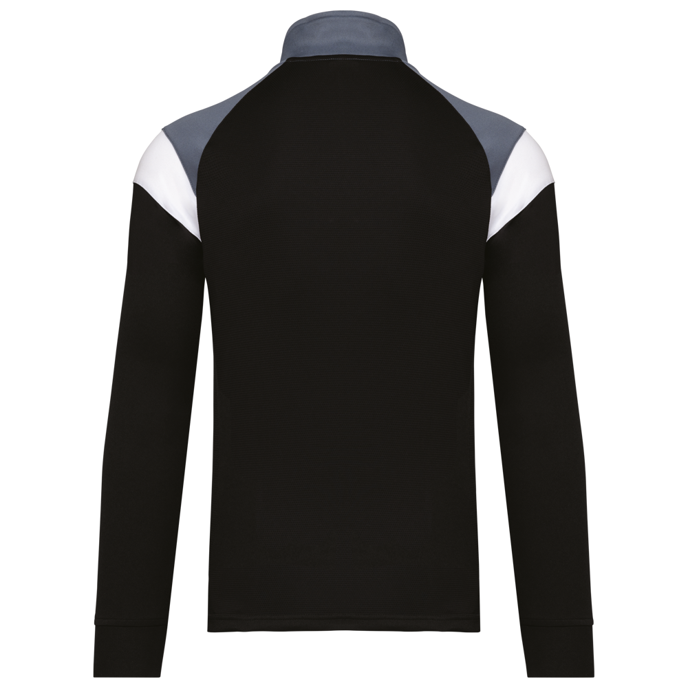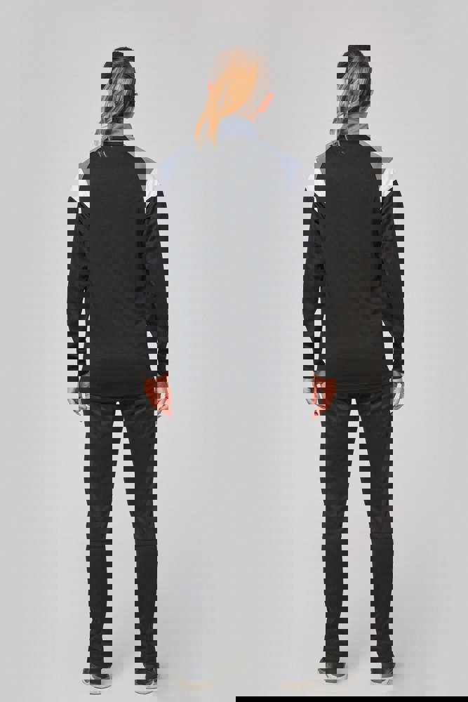 100% mat interlockpolyester. Rechte snit. Kraag met een omgekeerde ton-sur-ton nylonrits. Raglanmouwen met contrasterende inzetsels aan de schouder. Contrasterend inzetsel aan schouder en borst. Inzetsels in textuurstof opzij en achteraan. Zoom onderaan en verlengd achterpand. Zijsplitten voor meer gemak. Ritsafdekking boven aan de kraag, voor meer comfort. Afneembaar merklabel voor eenvoudige personalisatie.