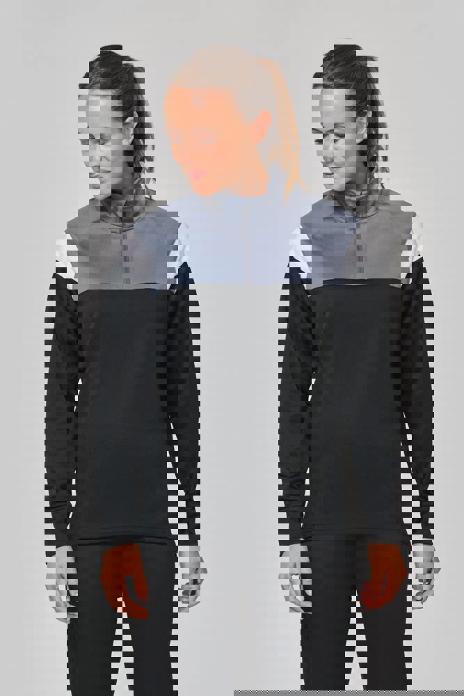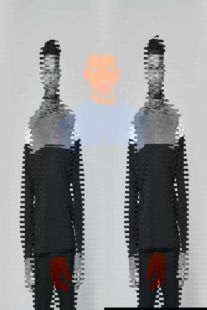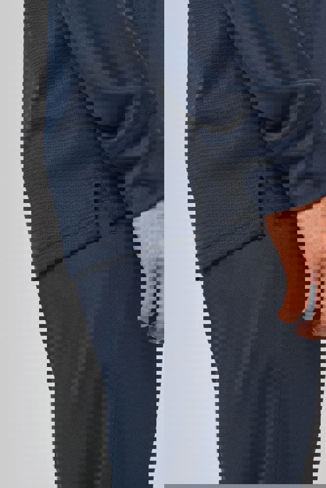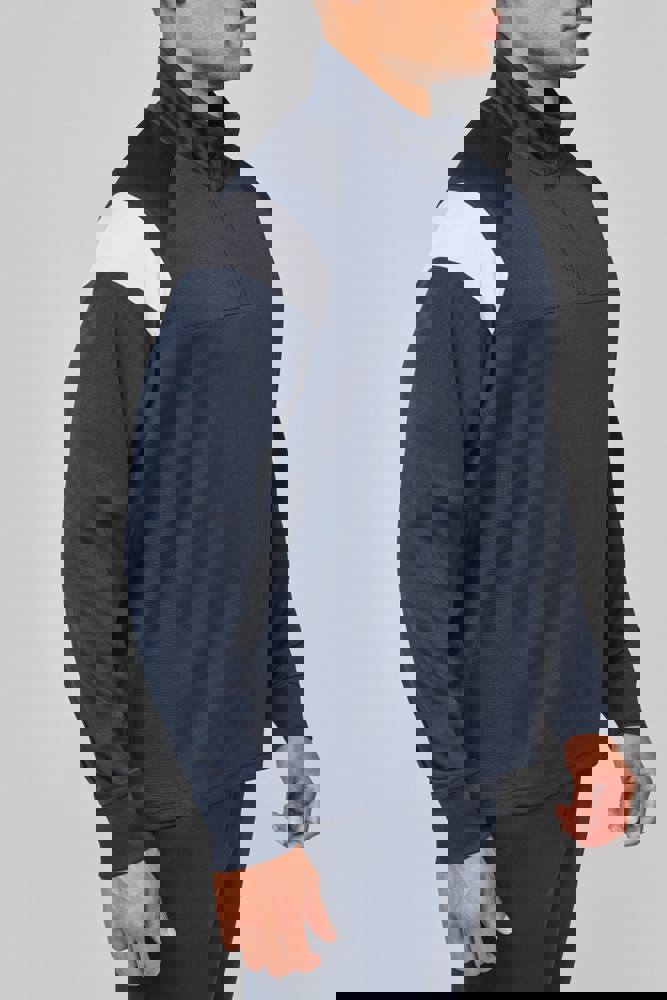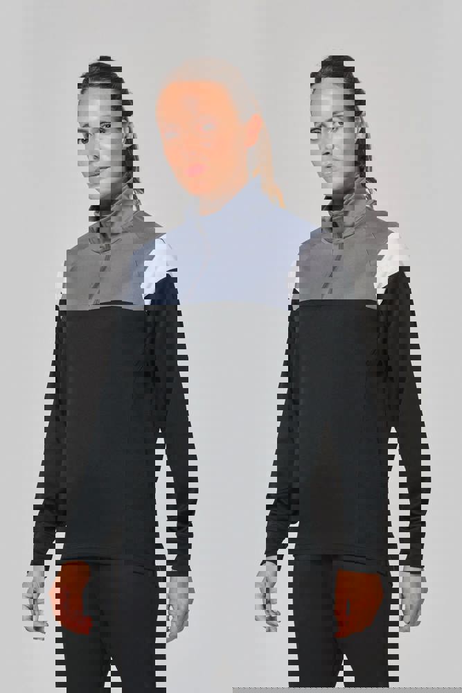 100% mat interlockpolyester. Rechte snit. Kraag met een omgekeerde ton-sur-ton nylonrits. Raglanmouwen met contrasterende inzetsels aan de schouder. Contrasterend inzetsel aan schouder en borst. Inzetsels in textuurstof opzij en achteraan. Zoom onderaan en verlengd achterpand. Zijsplitten voor meer gemak. Ritsafdekking boven aan de kraag, voor meer comfort. Afneembaar merklabel voor eenvoudige personalisatie.