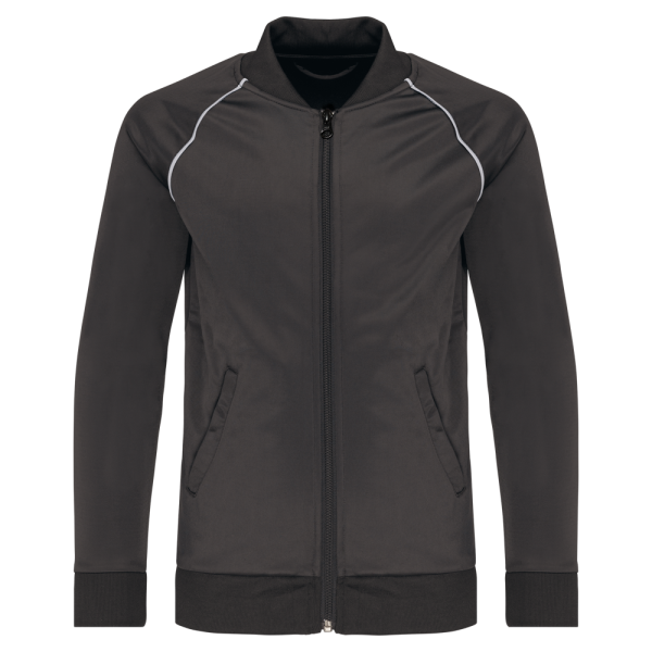 100% tricotpolyester. Rechte snit. Toon op toon ritssluiting in nylon. Raglanmouwen met contrasterend biesje. 1x1 ribboord aan kraag, mouwuiteinden en onderkant. 2 ritszakken aan de zijkant. Afscheurbaar merklabel voor eenvoudige personalisatie.