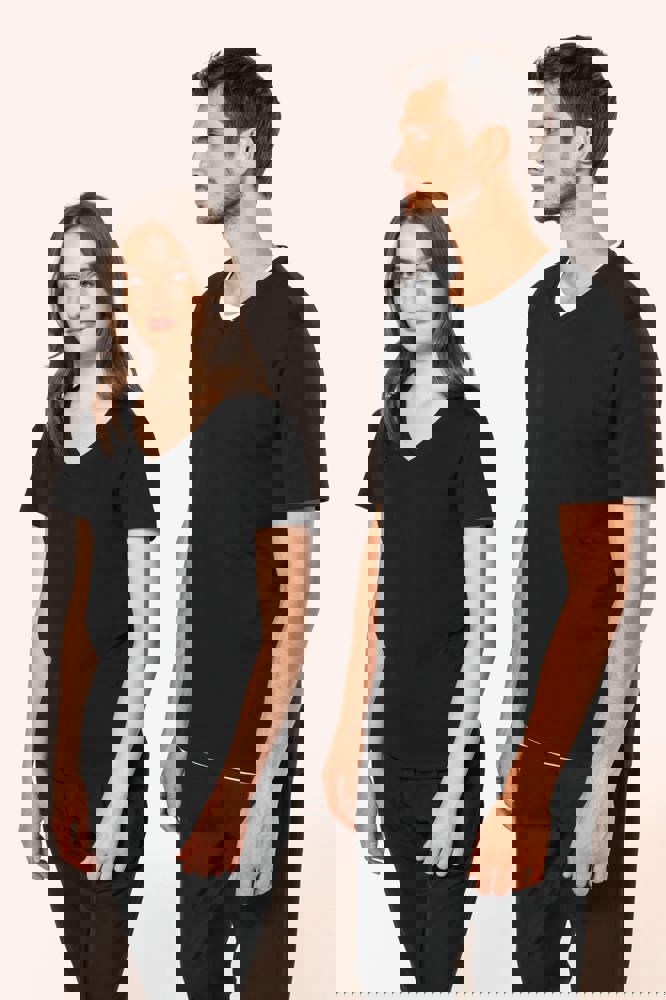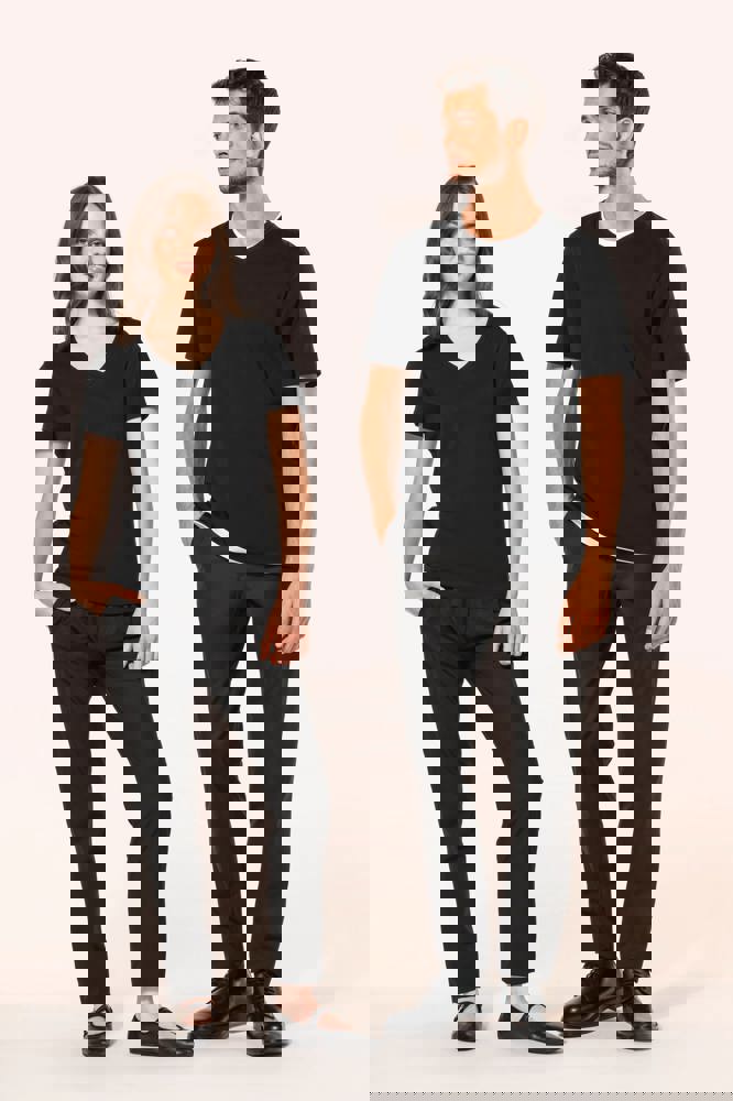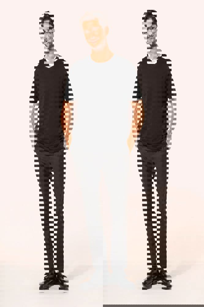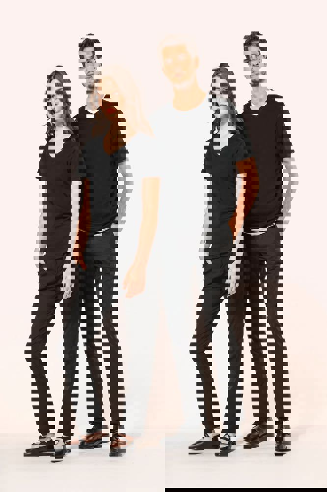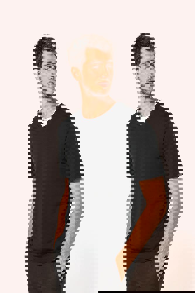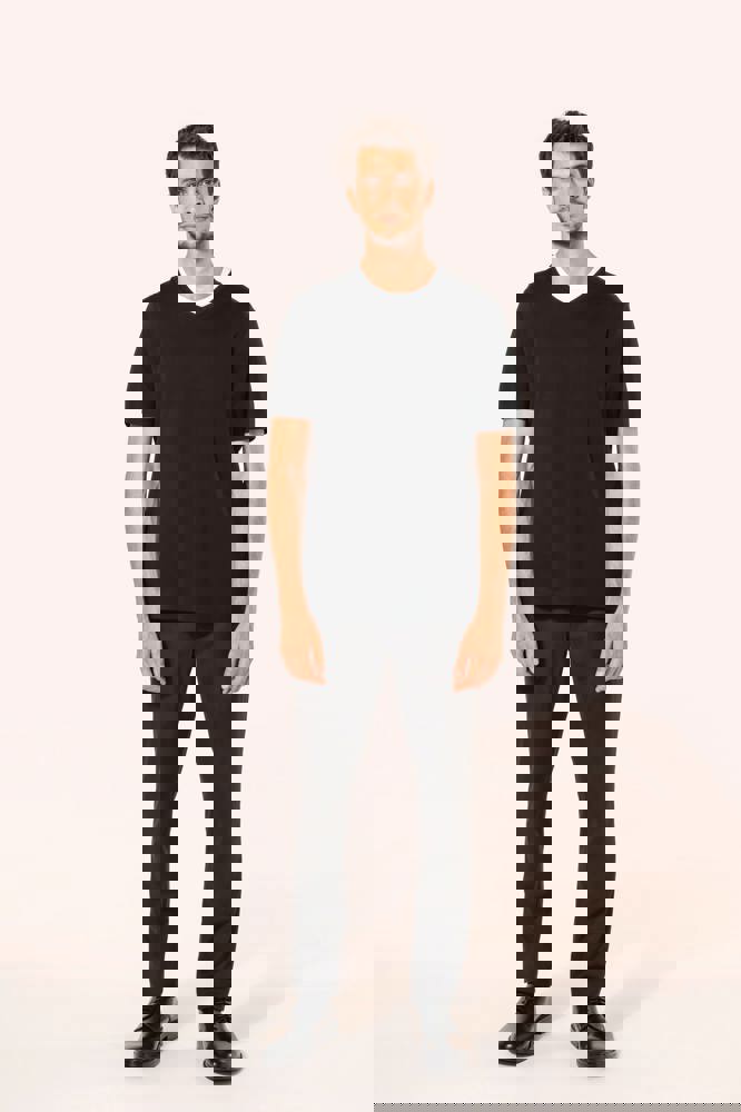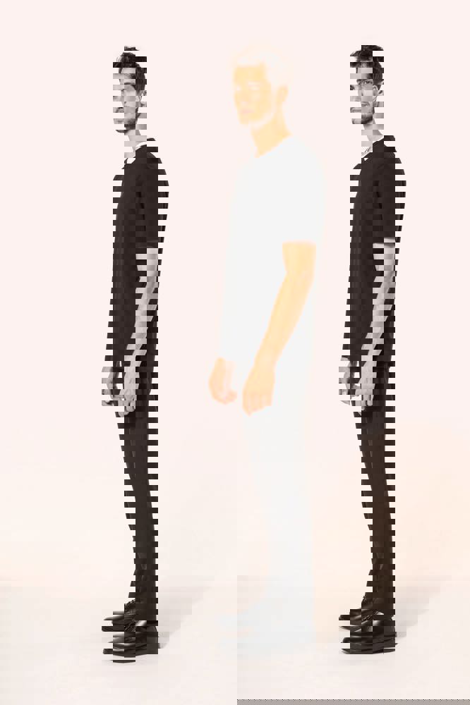 100% katoen. Tricot van gekamd Supima® katoen. Heel fijne, zachte en zijdeachtige jersey van grote kwaliteit. Gesneden en genaaide constructie. V-hals met ton-sur-ton nektape. Versteviging van de schoudernaad met een silicone bandje. De mouwuiteinden en onderkant zijn afgewerkt met een zoompje met dubbel stiksel. Geen merklabel in de kraag, maar enkel een maatlabel voor eenvoudige personalisatie.