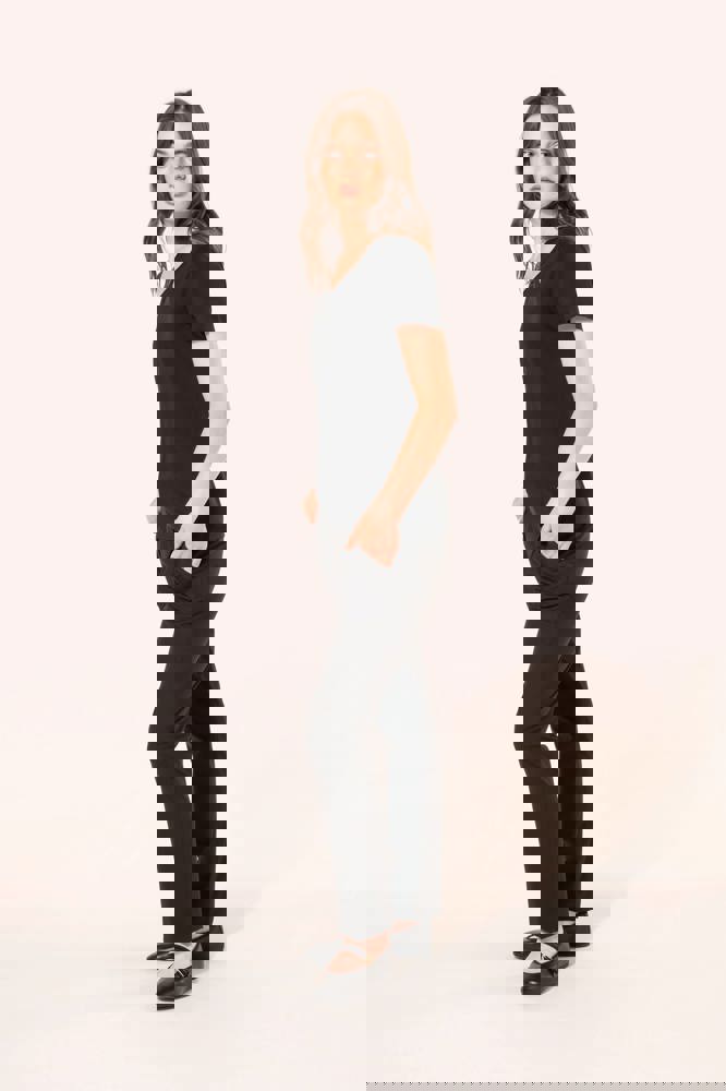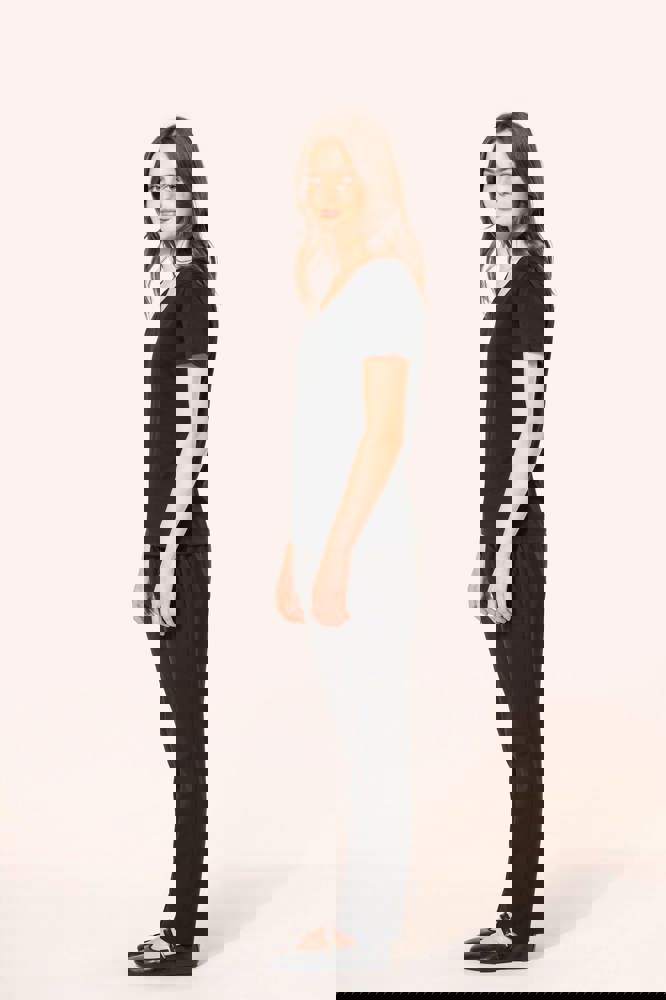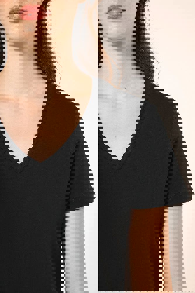 100% katoen. Tricot van gekamd Supima® katoen. Heel fijne, zachte en zijdeachtige jersey van grote kwaliteit. Gesneden en genaaide constructie. V-hals met ton-sur-ton nektape. Versteviging van de schoudernaad met een silicone bandje. De mouwuiteinden en onderkant zijn afgewerkt met een zoompje met dubbel stiksel. Geen merklabel in de kraag, maar enkel een maatlabel voor eenvoudige personalisatie.