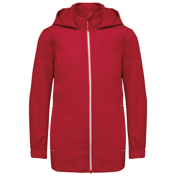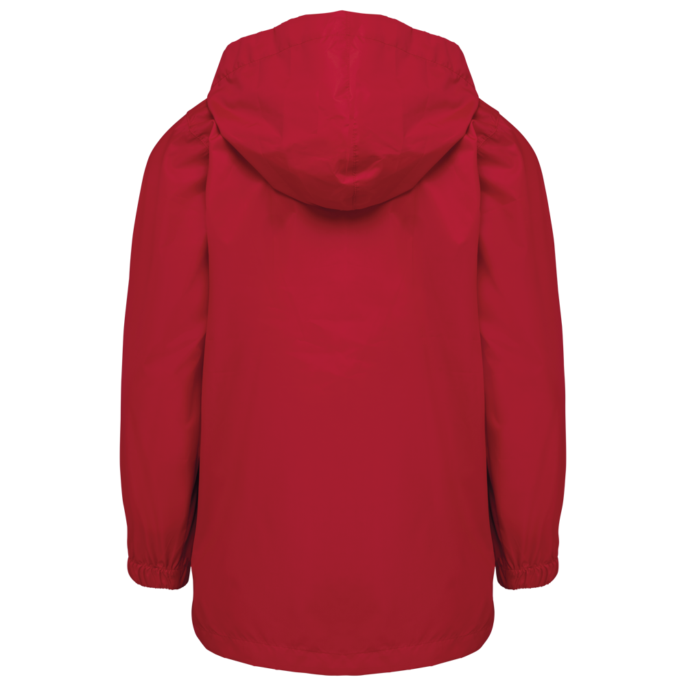 100% mat 210T polyester met PU-coating. Waterdichte stof 1500 mm. Waterdichte, thermisch verzegelde schoudernaden en capuchon. 2 zijzakken met rits en ritstrekker. 2 binnenzakken. Contrasterende ritssluiting vooraan. Capuchon in de kraag met klittenbandbevestiging. Elastische mouwuiteinden. Afneembaar merklabel.