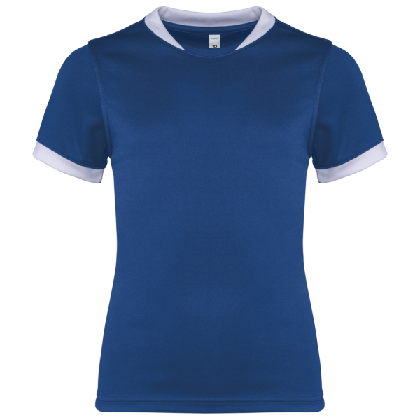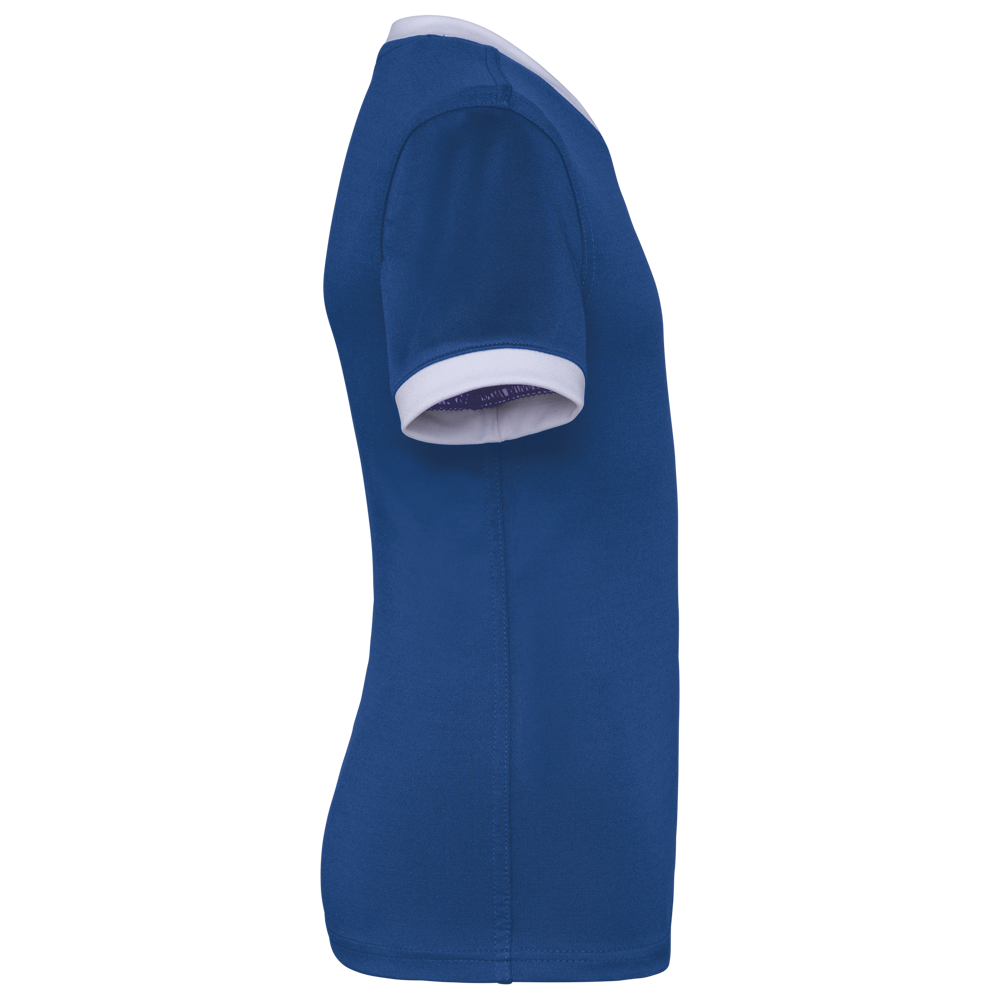 100% polyester. Interlock. Rechte snit. Cut-and-sew-techniek. Ronde hals in 1x1 ribtricot in contrasterend wit voor alle kleuren, met toon-op-toon interlock-inzetsel. Mouwuiteinden in 1x1 ribtricot in contrasterend wit voor alle kleuren. Toon-op-toon nektape van interlock. Verstevigde naden met dubbel stiksel aan de mouwopeningen, de schouders en opzij. Afwerking met dubbel stiksel onderaan. Afneembaar merklabel.