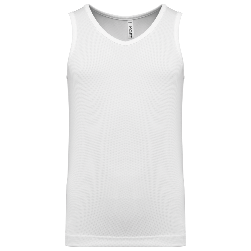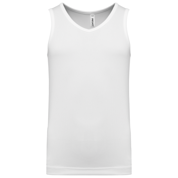 100% birdseye-polyester. Lichte, sneldrogende stof. Biesje aan halsopening en armsgaten. Dubbel stiksel op de zoom onderaan. Afneembaar merklabel.