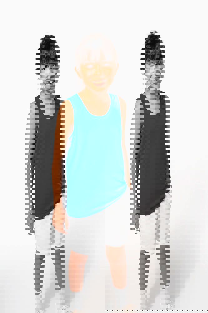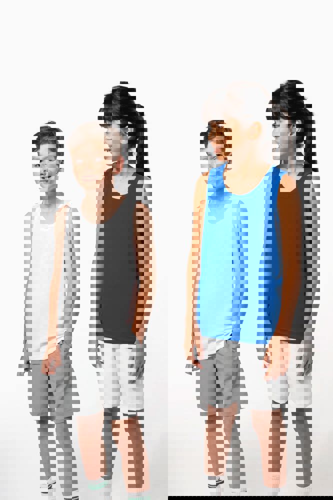 100% birdseye-polyester. Lichte, sneldrogende stof. Biesje aan halsopening en armsgaten. Dubbel...meer