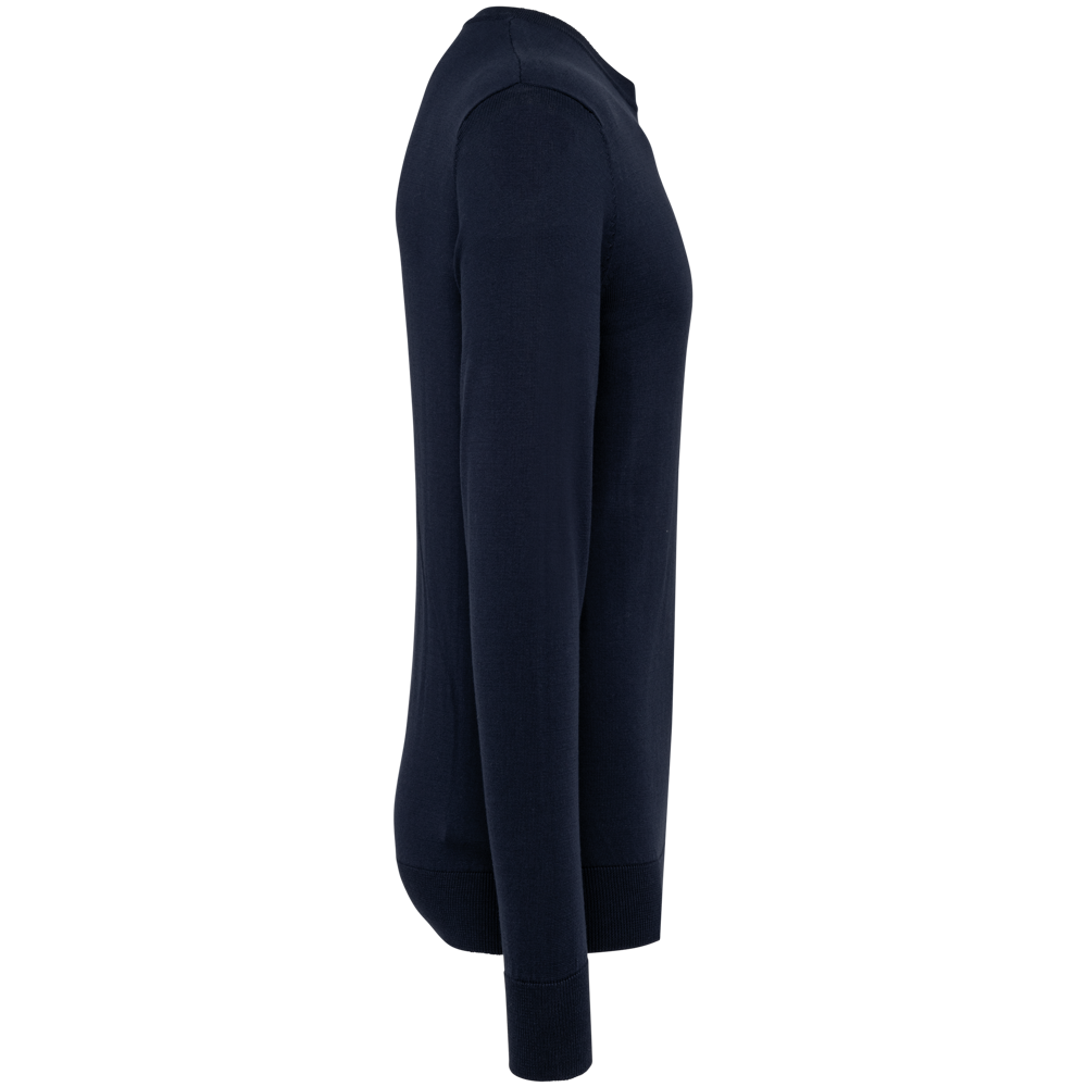 100% Supima® katoen. Gekamd katoen. Gauge 12. Stof van topkwaliteit. Fully-fashioned: gebreid in de vorm en geassembleerd op de machine. Halsopening, mouwuiteinden en onderkant in 1x1 ribboord.
