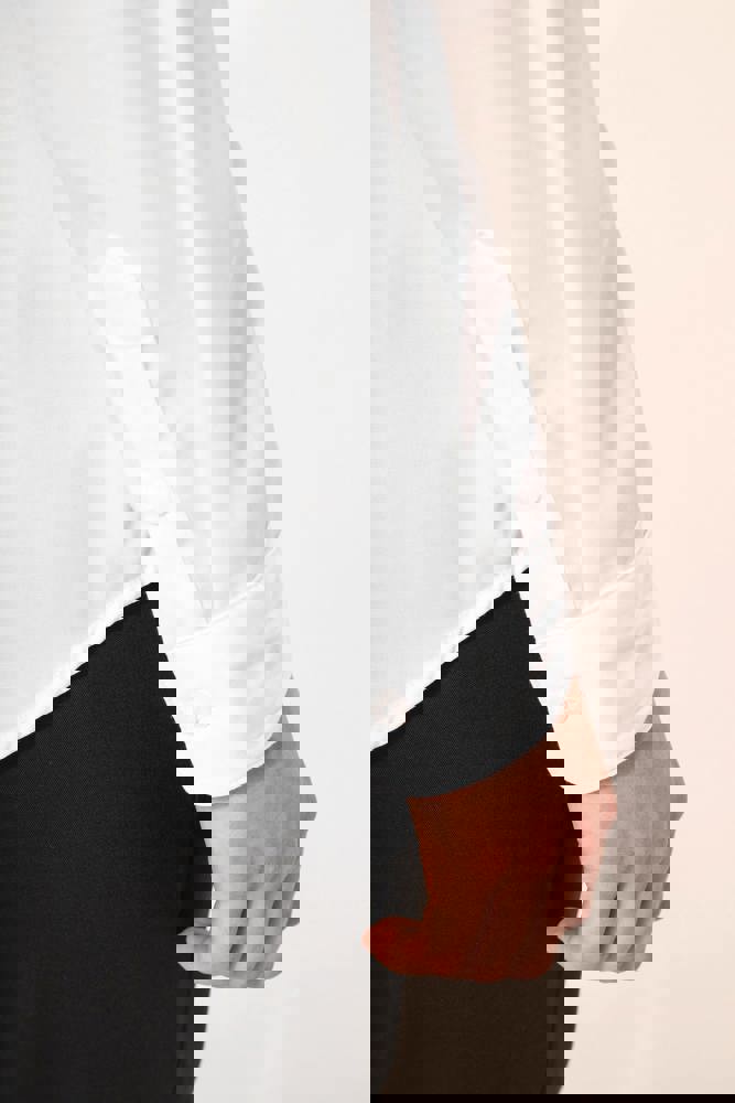 100% katoen. Twillstof. Gemakkelijk in onderhoud (EasyCare-behandeling). Dubbel getwijnd garen 80 x 2 van topkwaliteit. Inzetsel aan de bovenkant van de rug. Onzichtbare knooplijst. Paarlemoeren knoopjes. Manchetten met 2 knopen met afgeronde hoeken. Geen merklabel, maar enkel een maatlabel voor eenvoudige personalisatie.