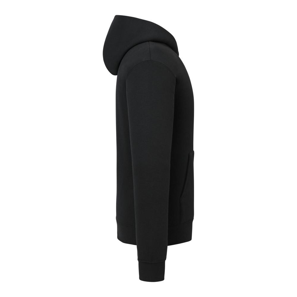 70% katoen / 30% polyester. Klassieke pasvorm. Kangoeroezak. 1x1 geribde manchetten en tailleband.