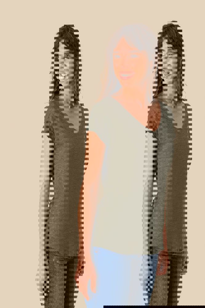 100 % Linnen. Tricot. Rechte snit. Zijnaden. Hals in de hoofdstof. Nektape in de hoofdstof in de...meer