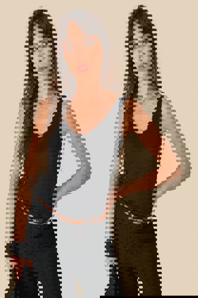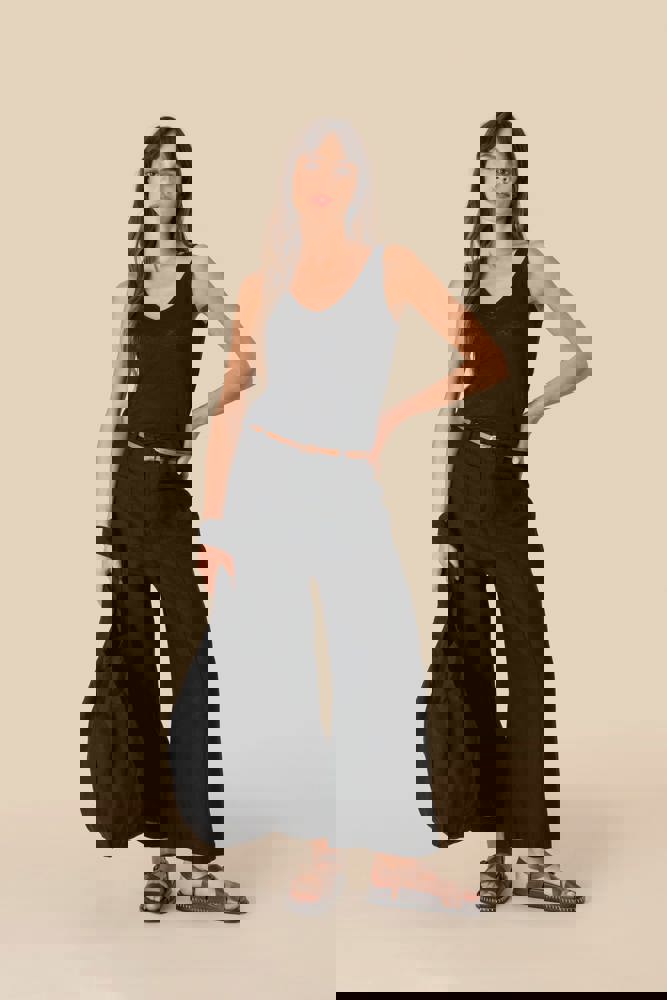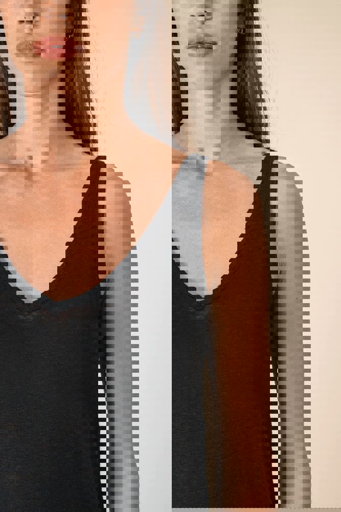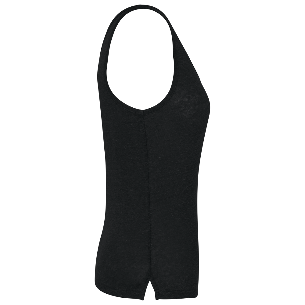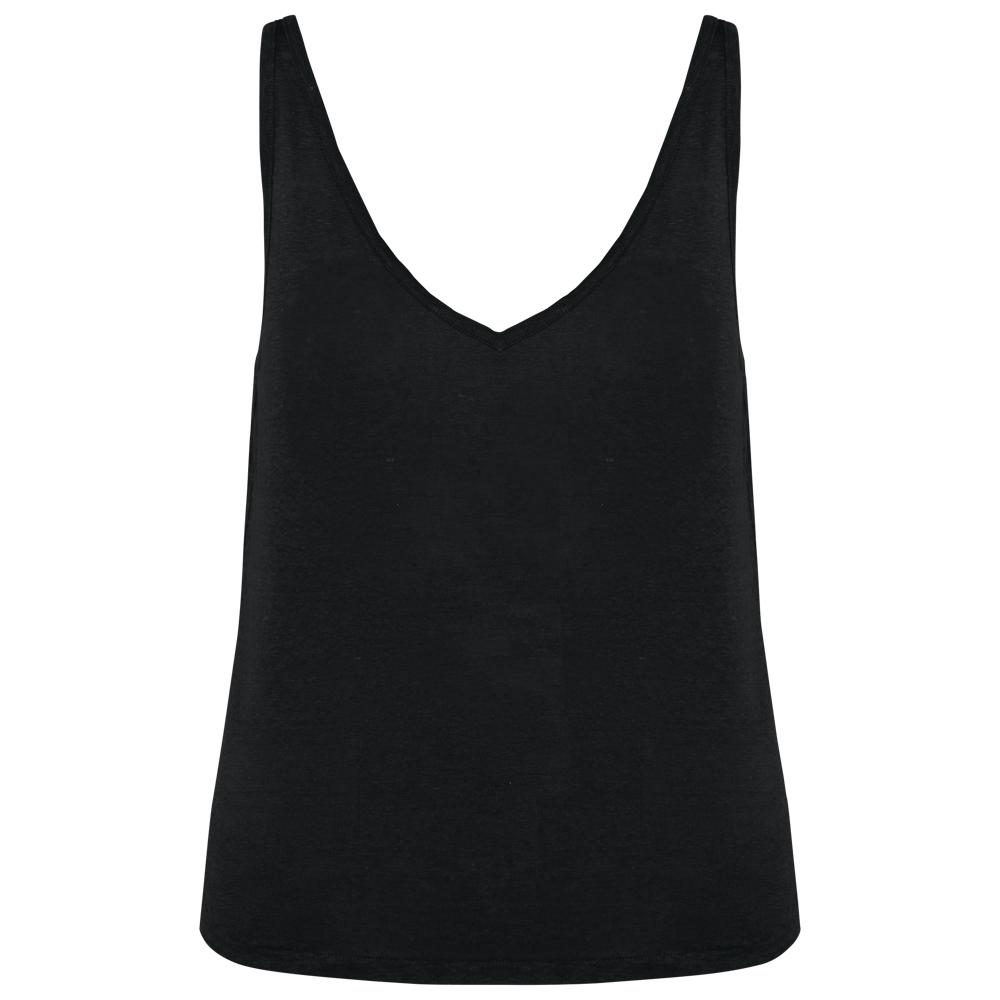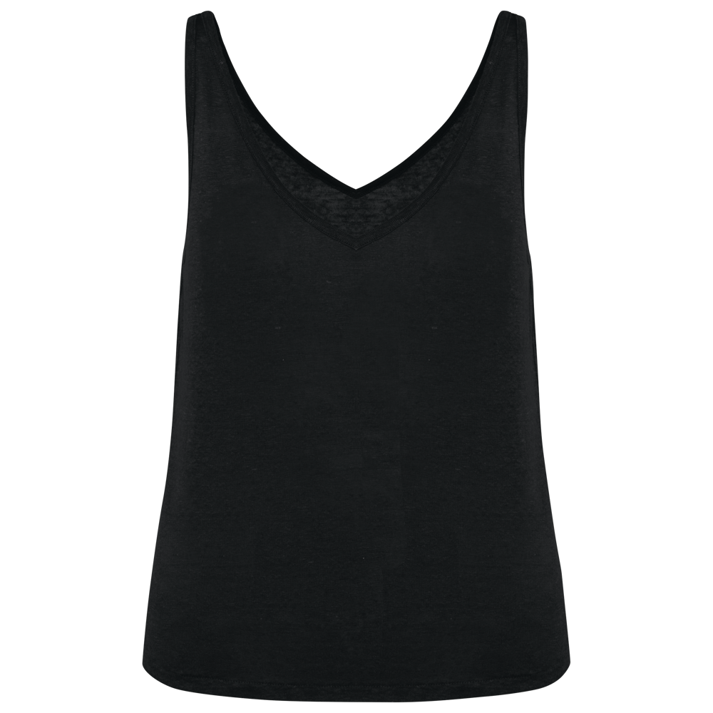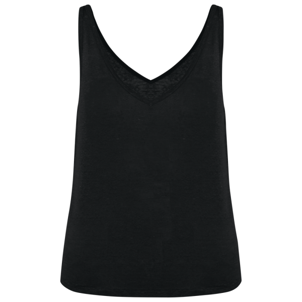 100% linnen. Tricot. Regular fit. Halsopening aan de voorkant en V op de rug. Bies in...meer