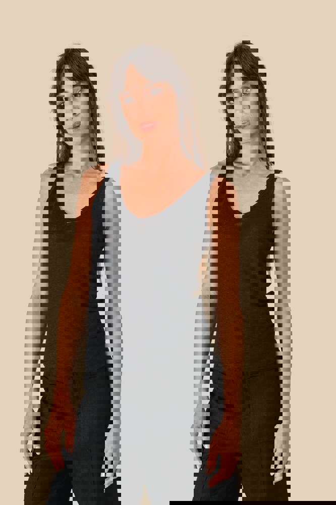 100% linnen. Tricot. Regular fit. Halsopening aan de voorkant en V op de rug. Bies in hoofdmateriaal en biesstiksel op de halslijn en mouwinzetten. Splitten aan de zijkanten. Zoom met enkel stiksel onderaan. Certificering in uitvoering.