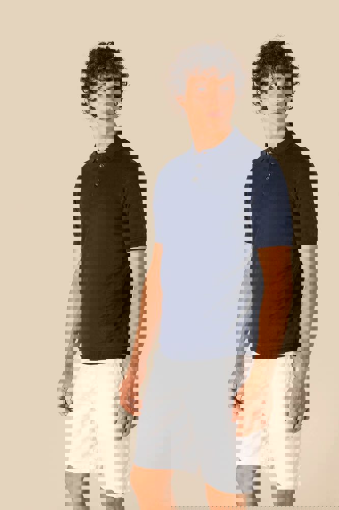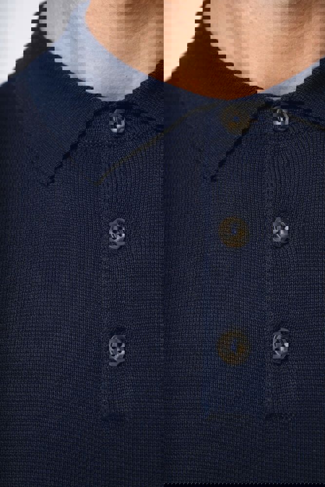 100% biokatoen. Gekamd katoen. Gauge 12. Rechte snit. Knooplijst met 3 knopen. Contrasterende...meer
