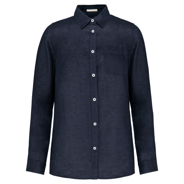 100 % Linnen. Geweven. Afgewassen blouse. Rechte snit. Klassieke knooplijst met knopen met parelmoereffect. Borstzak aan de linkerkant Inzetsel op de rug met plooi voor meer bewegingsvrijheid. Knopen op de polsband met verstelbaar uiteinde. Contrasterend Natural biesje aan de binnenkant van de kraagstaander. De kleur Linen werd niet geverfd en kan variëren van product tot product.