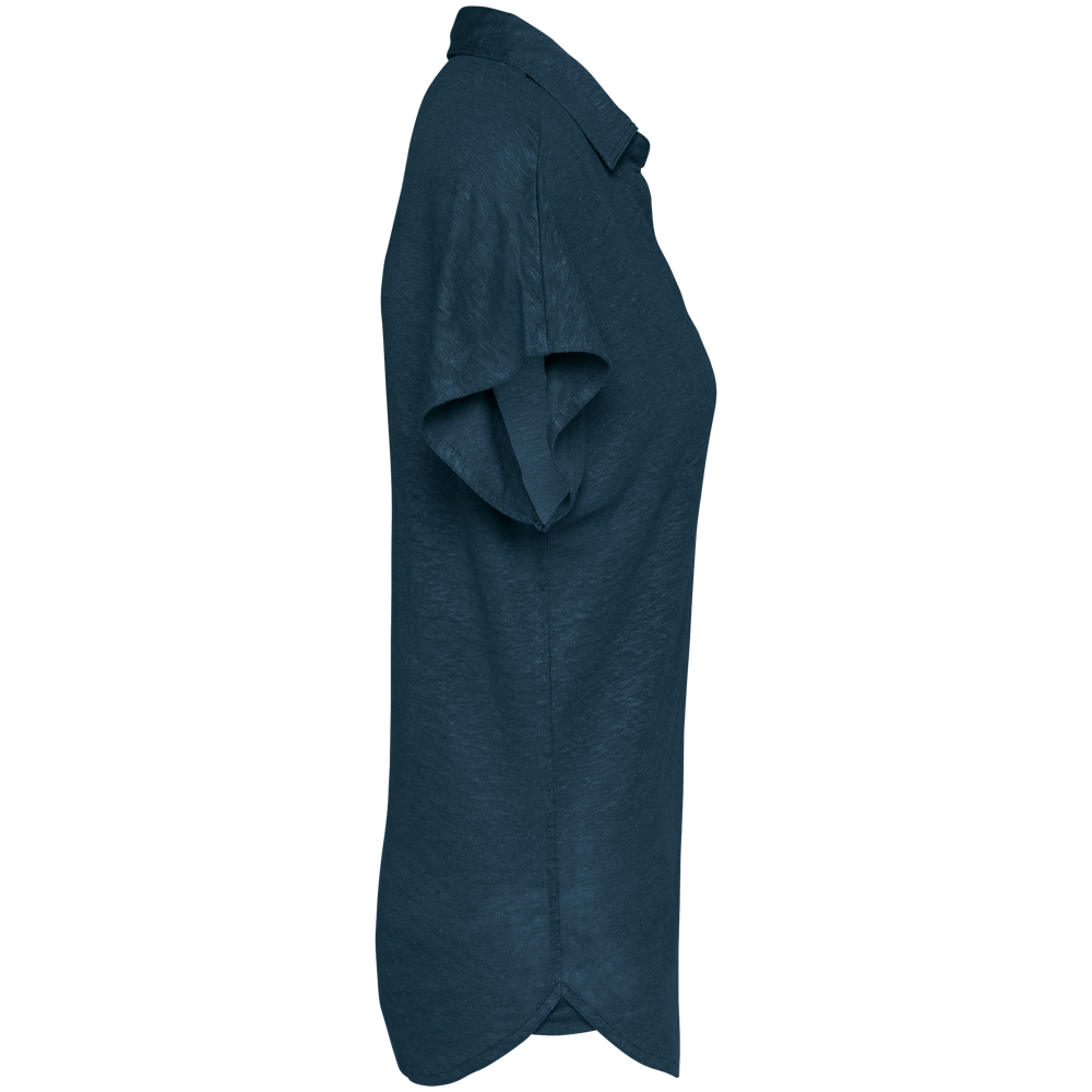 100 % Linnen. Tricot. Regular fit met afhangende mouwen. Zijsplitten met een driehoekje. Polokraag met staander en V-hals met knooplijst zonder knoop in de hoofdstof. Dubbel stiksel aan de mouwboorden en de zoom. Halvemaan op de achterkant.