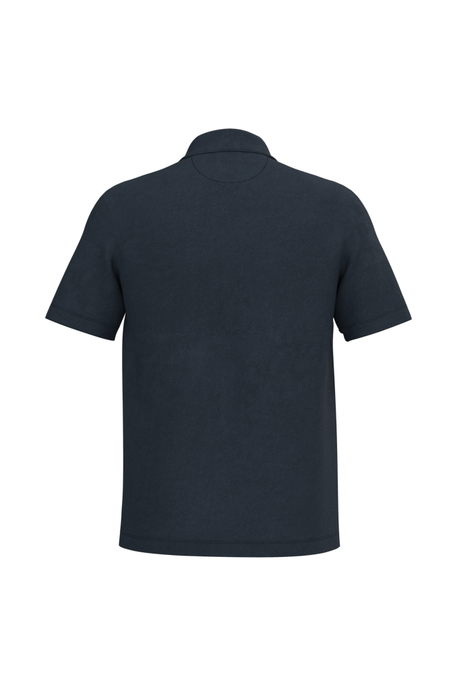 80% biologisch katoen / 20% post-consumer gerecycled polyester. Gemaakt in Portugal. Gekamd katoen. In spons. Rechte snit. Enzymgewassen. Polokraag en V-hals zonder knoopje in de hoofdstof. Schouderversteviging. Afgewerkt met dubbel stiksel aan de mouwuiteinden en de onderkant. Halvemaan op de achterkant.