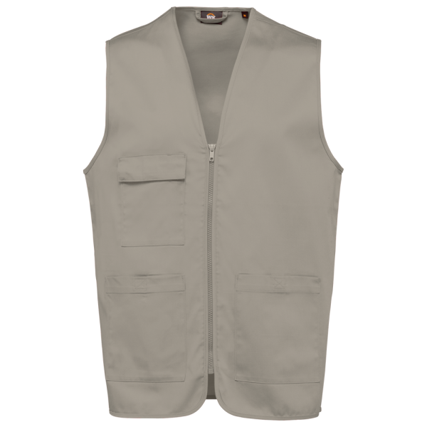 Buitenkant: 65% polyester / 35% katoen. Rechte snit. 2 grote opgezette zakken met klittenbandsluiting aan de voorkant + 1 opgezet borstzakje met 1 pennenvakje. Ton-sur-ton plastic ritssluiting. Ophanglus in de kraag. Licht verlengd achterpand. Ton-sur-ton biesje aan de mouwopeningen en de rand van het kledingstuk. Naamlabel aan de binnenkant. Tear-away merklabel.